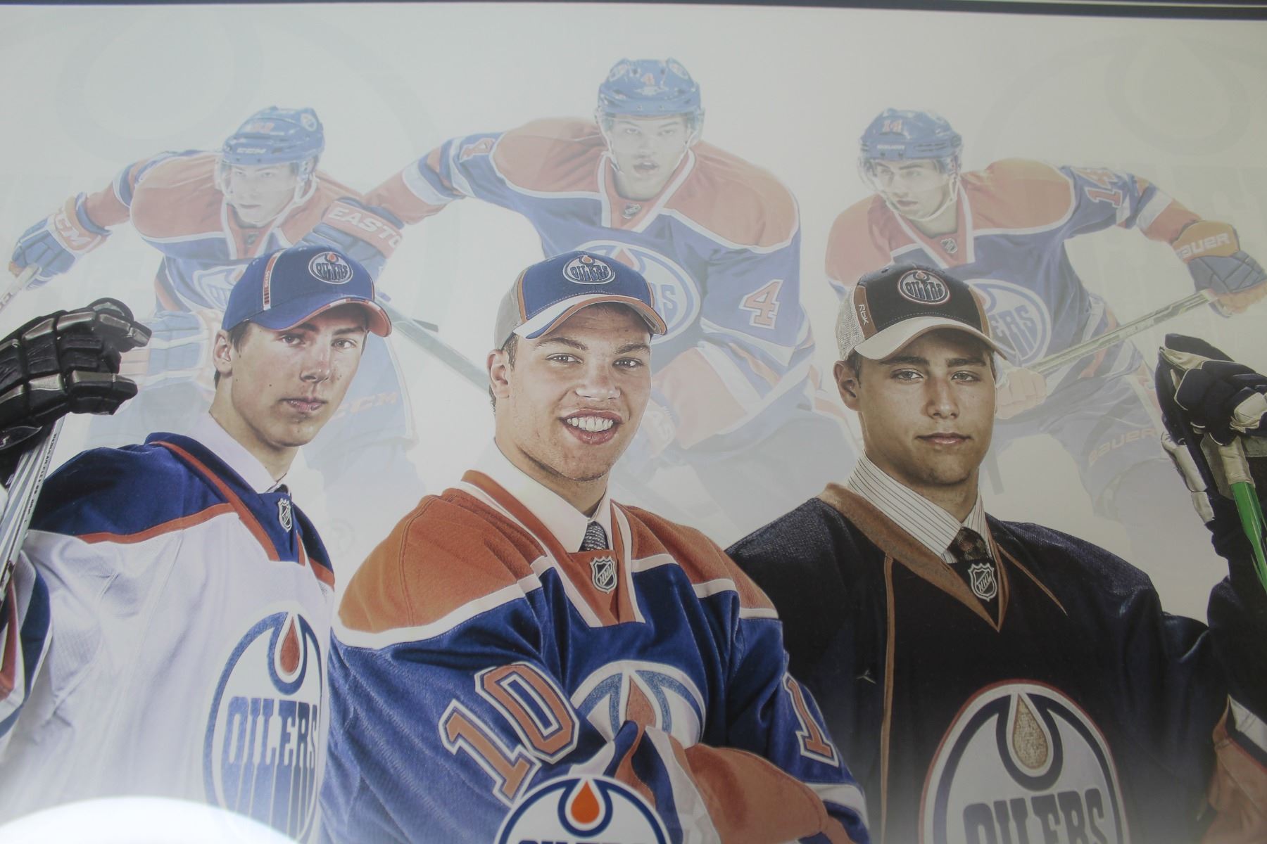 Oilers " Forging the Future" Framed Print - Nugent-Hopkins, Hall & Eberle (29x23x1.5")