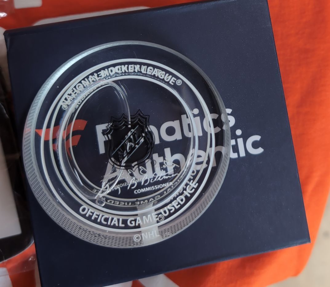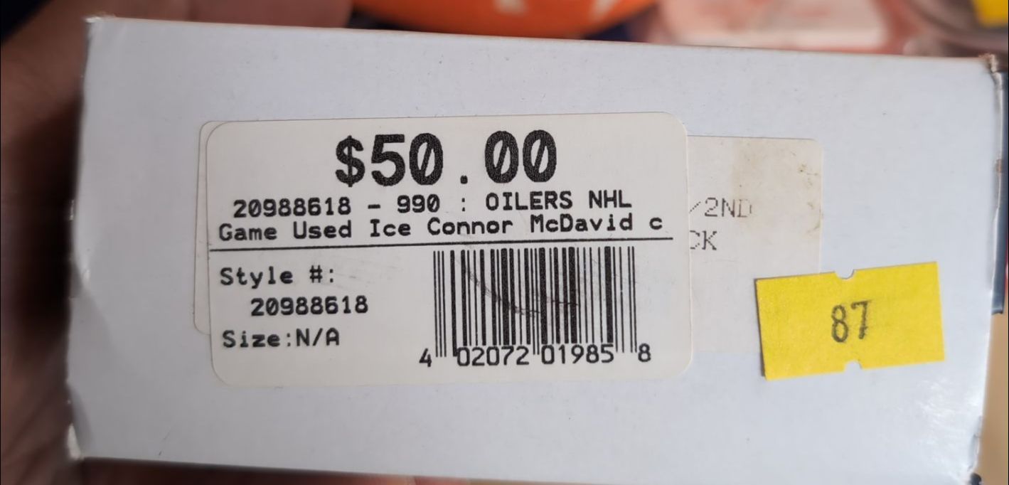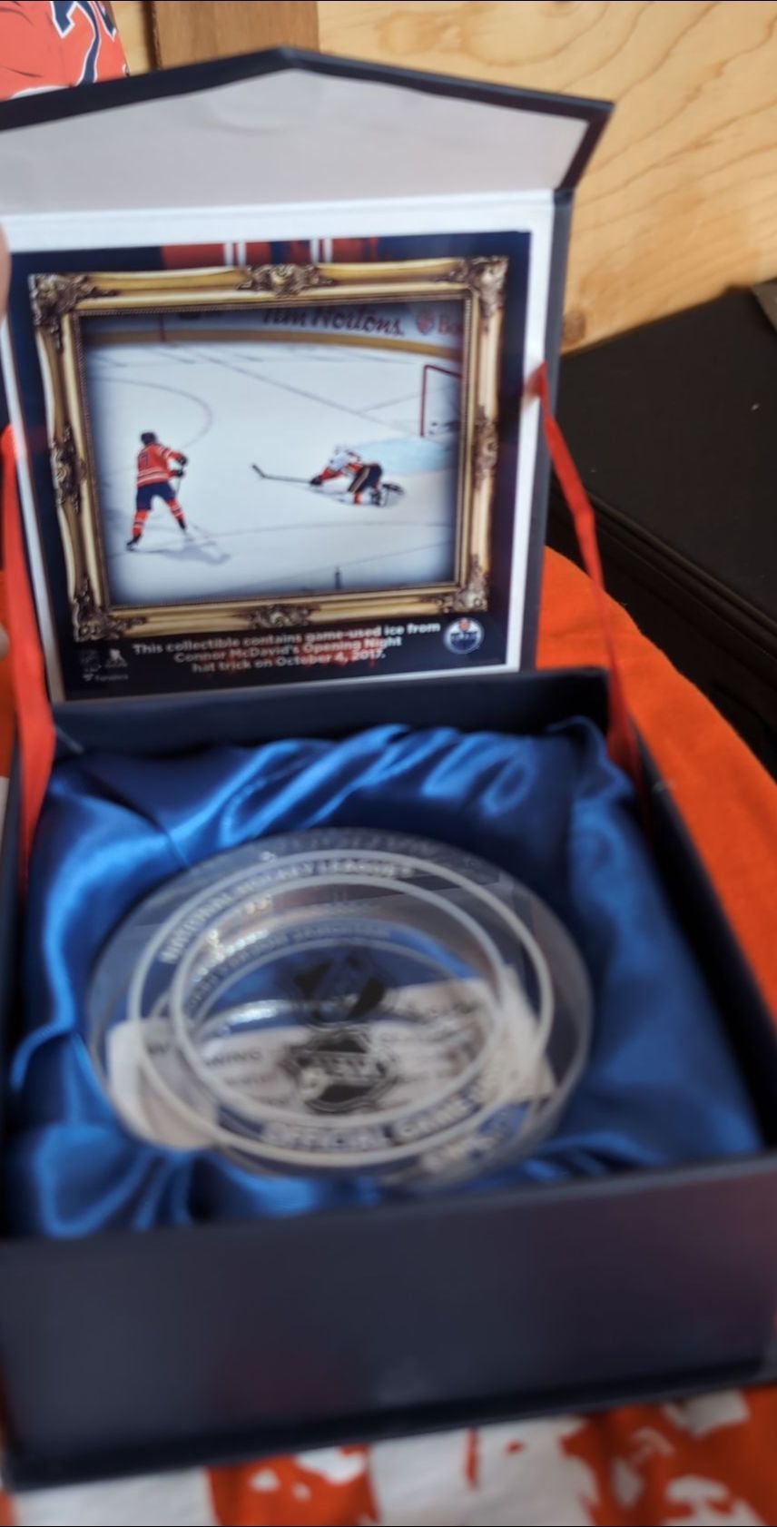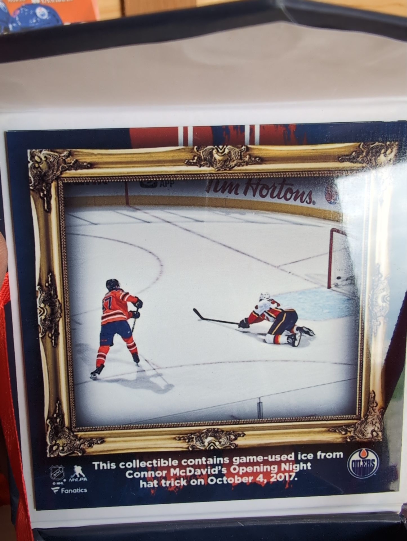 Oilers T-Shirts, Scarves, Luggage tags, Programs and Official game Used Ice