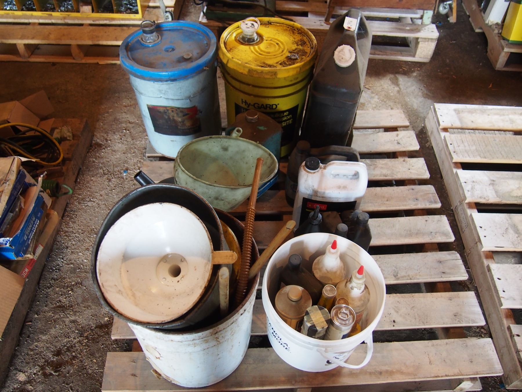 Oils, Funnels, Some Hydraulic Oil, Etc