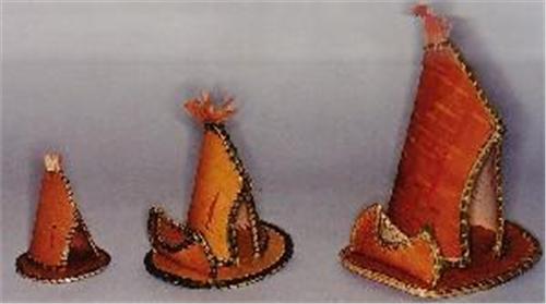 They are made with birchbark.5" tee-pees are trimmed with porcupine quills.