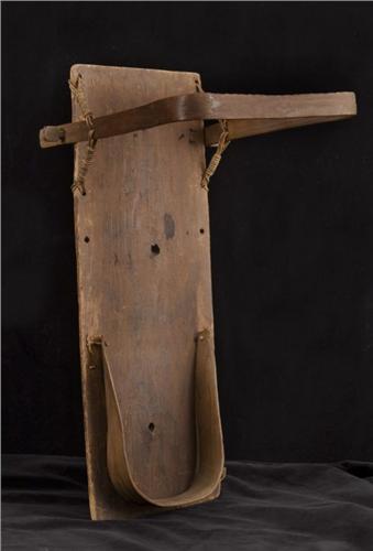 Ojibwa Cradle. 26" x 9 1/2". Solid wood construction. Hood shows some carving. 19th century. Good condition. (est $1,250-1,500)