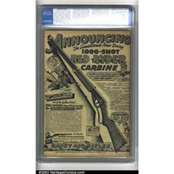 Okay Comics #1 (United Features Syndicate, 1940) CGC VF+ 8.5 Cream to off-white pages. Very nice-looking copy of a very early Golden Age title, listed as "scarce" in Gerber's The Photo-Journal Guide to Comic Books. Charles Quinlan art is featured, and the characters Little Giant, Phantom Knight, Sunset Smith, and the Teller Twins debut in this two-issue title. Overstreet 2002 VF 8.0 value = $483. Important notice: We expect to be auctioning lots at the rate of 200-250 per hour. Sometimes eBay Premier live bid software cannot keep up with that pace, so we strongly recommend that you place a realistic proxy bid now as insurance to avoid disappointment. Also please note that all Heritage/CAA lots purchased through eBay Premier carry a 20% Buyer's Premium.