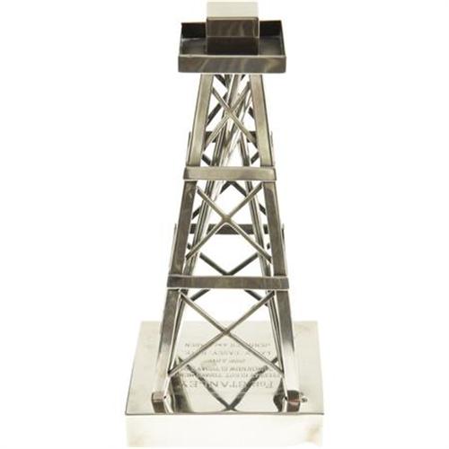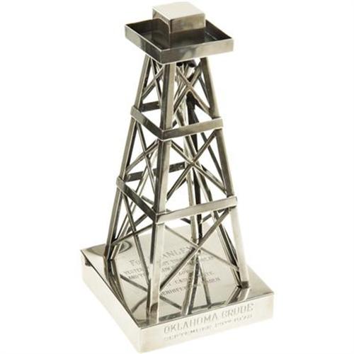 <B><I>Oklahoma Crude</B></I></B></I><B> Commemorative Gift to Stanley Kramer.</B></I> An engraved silver-plated sculpture of an oil derrick, given to Stanley Kramer from his family to commemorate the filming of his 1973 film <I>Oklahoma Crude</B></I> (starring George C. Scott and Faye Dunaway). Engraving on the base reads "For Stanley, Yesterday Is But Today's Memory And Tomorrow Is Today's Dream. Our Love, Larry, Casey, Kate, Jennifer, and Karen." Though there is a small indentation along the back of the base, the piece is in overall Very Fine condition and is 8.5" tall with the base 4" in width. <I>From the Stanley Kramer Estate.</B></I><BR><BR><b>Shipping:</b> Miscellaneous Collectibles, Smal (<a target="_blank" href="http://www.heritageauctions.com/common/shipping.php">view shipping information</a>)