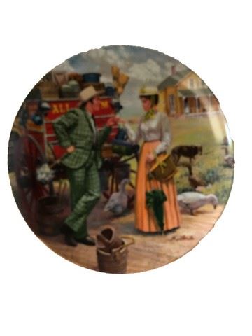 "I Can't Say No", the third issue in the "Oklahoma" collector's plate series to commemorate this beloved musical. Endorsed by the estates of Richard Rodgers and Oscar Hammerstein II. Painted exclusively for this Limited Edition by Mort Kunstler and fired on fine China by Edwin M. Knowles. Plate number 3743 a. (10"x10") Certificate of Authenticity included.