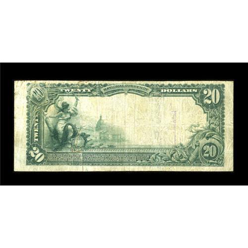 <B>Okmulgee, OK</B></I> - $20 1902 Plain Back Fr. 660 <B>The American NB</B></I> Ch. # (W)12048<BR>The census from here numbers just four large size, with tonight's <B>Fine</B></I> example being the sole documented survivor of the $20 Plain Back design. A solid note for the grade and still displaying full strength purple stamped signatures.<BR><BR><b>Shipping:</b> Coin/Currency (<a target="_blank" href="http://www.heritageauctions.com/common/shipping.php">view shipping information</a>)