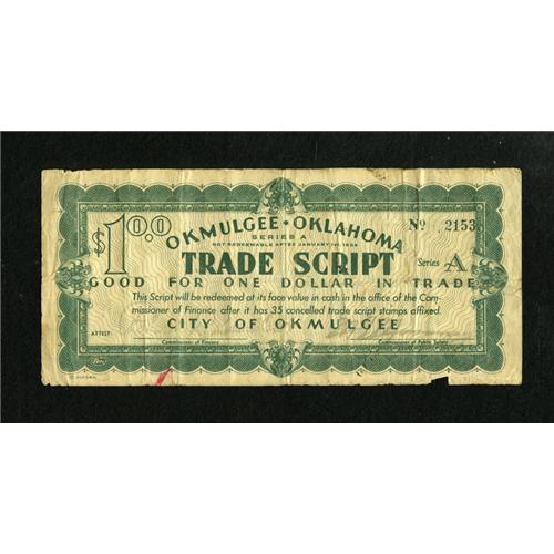 Okmulgee, OK- Trade Script $1 Jan. 1, 1934 This