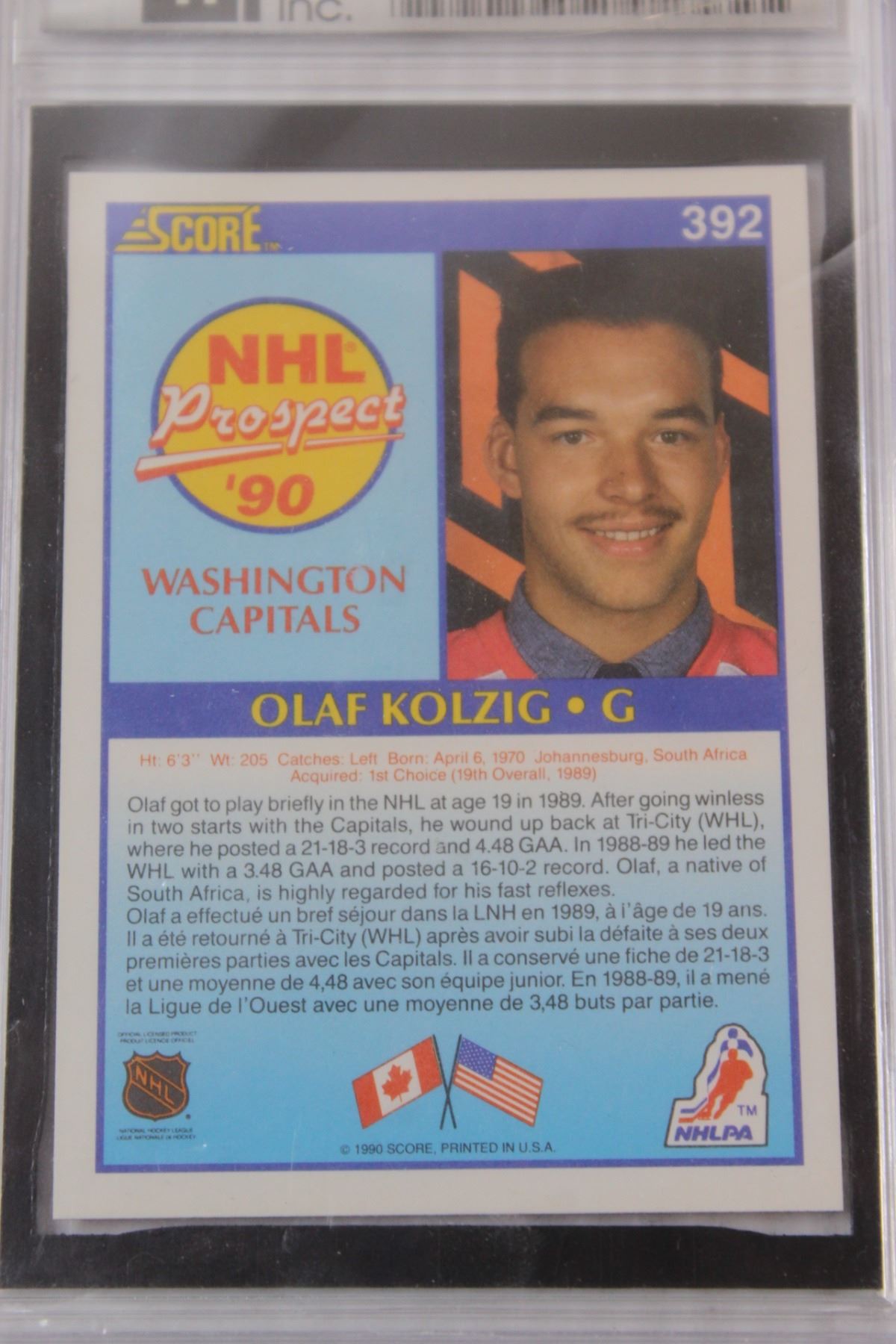 Olaf Kolzig Score 1990 Rookie Hockey Trading Card in Protective Case