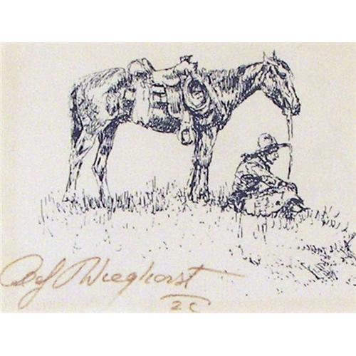 Olaf Wieghorst (1899-1988) Lithograph, Cowboy & Horse, sight size 4" x 5", signed lower left