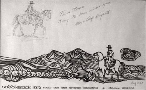 Olaf Wieghorst (1899-1988) (California) Pen and Ink on Placemat, Horse and Rider, 9" x 15", inscribed "Friend Bruce, Sorry to have missed you, Mae and Olaf Wieghorst," Wieghorst studied at the Grand Central School and was a member of the Society of Independent Artists