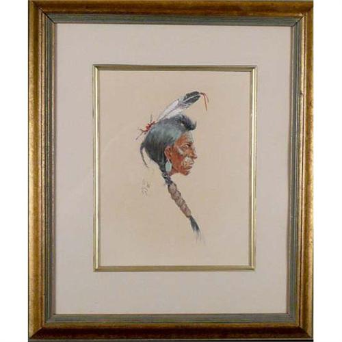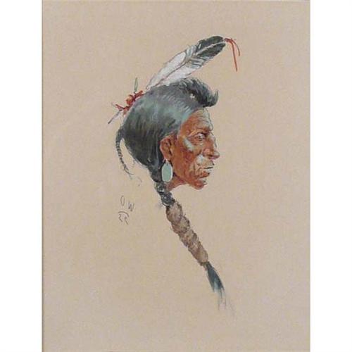7537 Olaf Wieghorst, Watercolor/Ink Indian Profile Initialed center left OW 10" x 7 1/2"