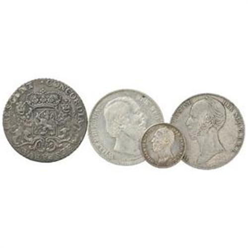 Olanda Lotto di 4 monete in argento: ducatone 1766, 2 e 1/2 gulden 1845 e 1874 e 1/2 gulden 1847