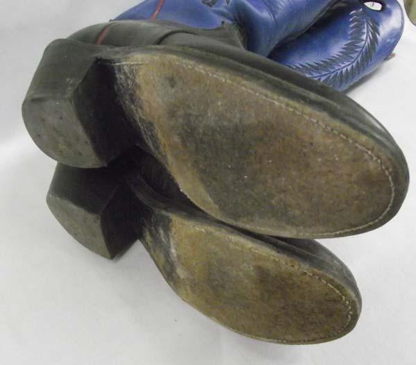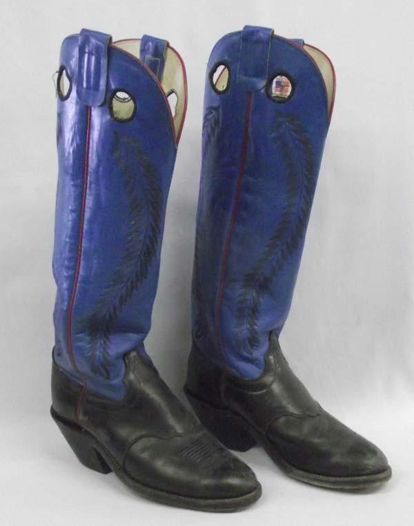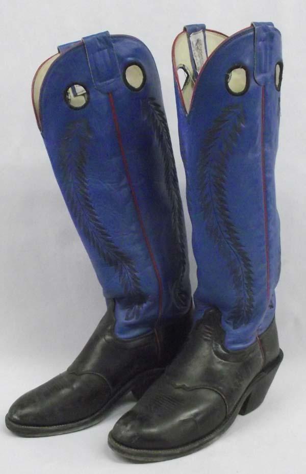 Olathe Blue Topped Cowboy Boots, high topped style, black bottomed, Olathe Boot Company Olathe KS, size 10D, 19''Tall. Buyers Pay Actual Shipping and Handling Charges(see terms and conditions for more information)