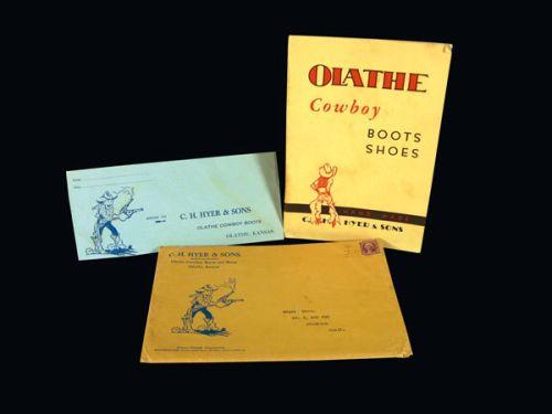 Olathe Cowboy Boot Catalog, C.H. Hyer and Sons, Olathe, KS. Includes brochure in original envelope. 6 1/2 X 9 1/4 inches.