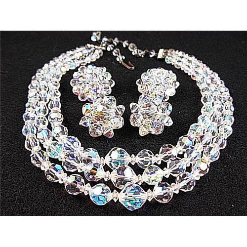 <tr><td>Title:Old AURORA BOREALIS Crystal NECKLACE & Earrings</td></tr>