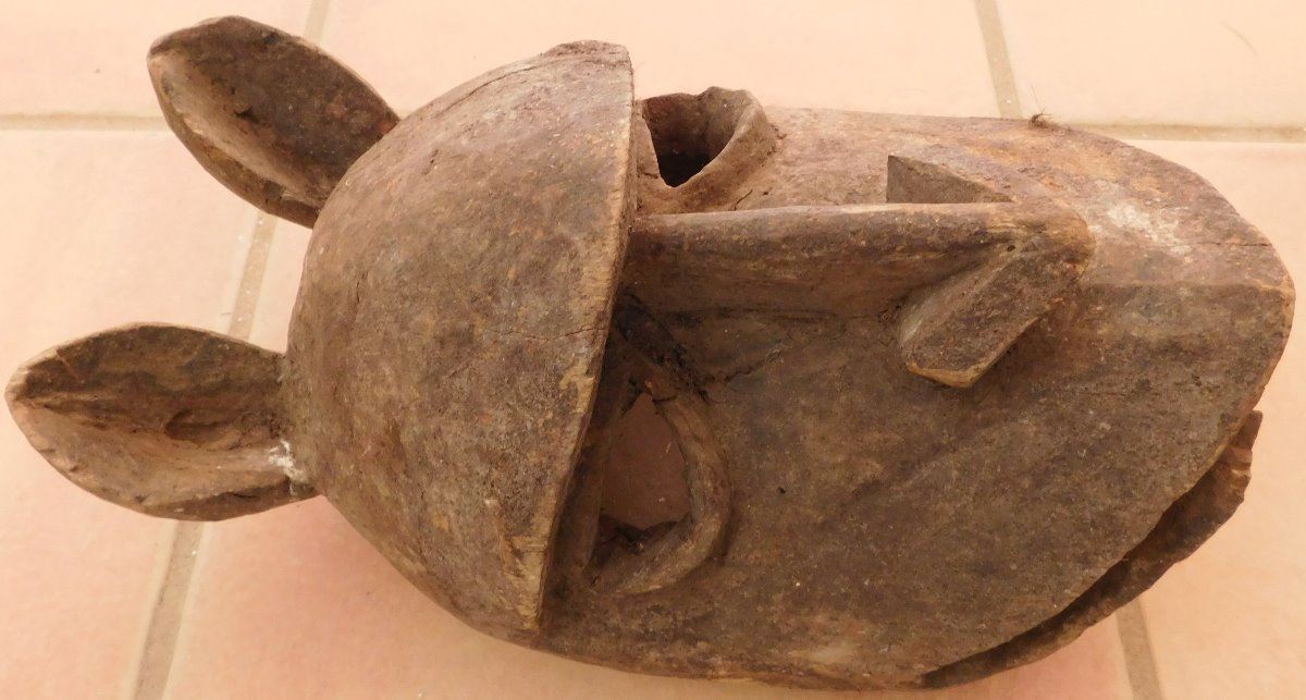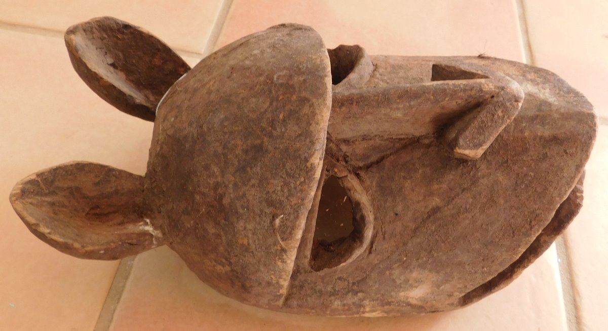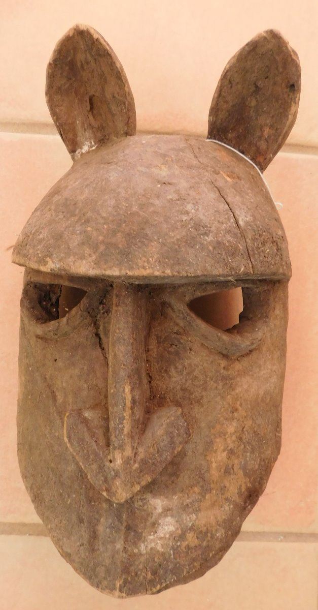 Old African Mask, early 20th century. Made of wood, the item measures 12.5" x 6" x 6.5". Dogon tribe. Condition: Good, see images. Shipping: $27.50 w/insurance and signature.