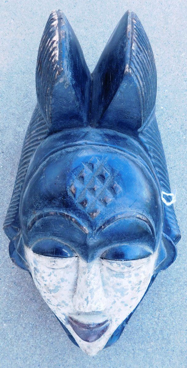 Old African Mask, early 20th century. Made of wood and measuring 13" x 8" x 6". Punu tribe. Condition: Good, see images. Shipping: $30.00 w/insurance and signature.