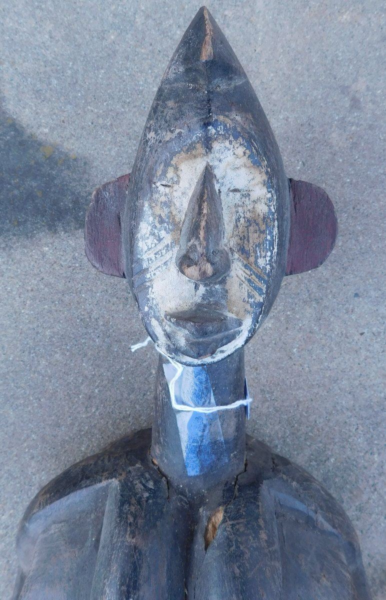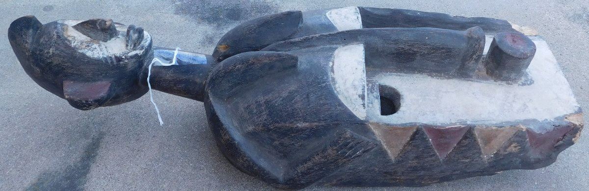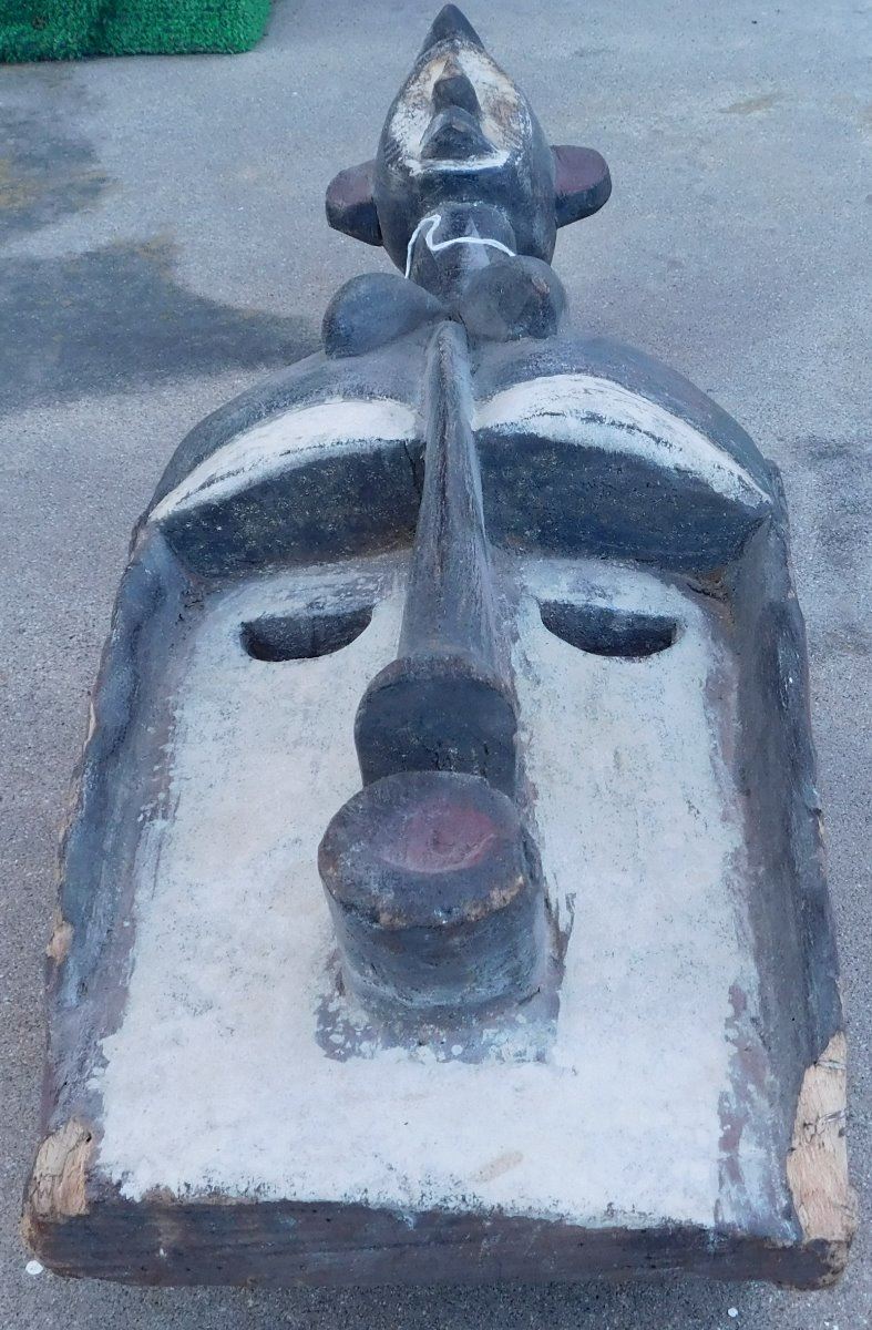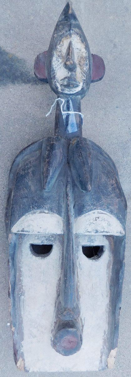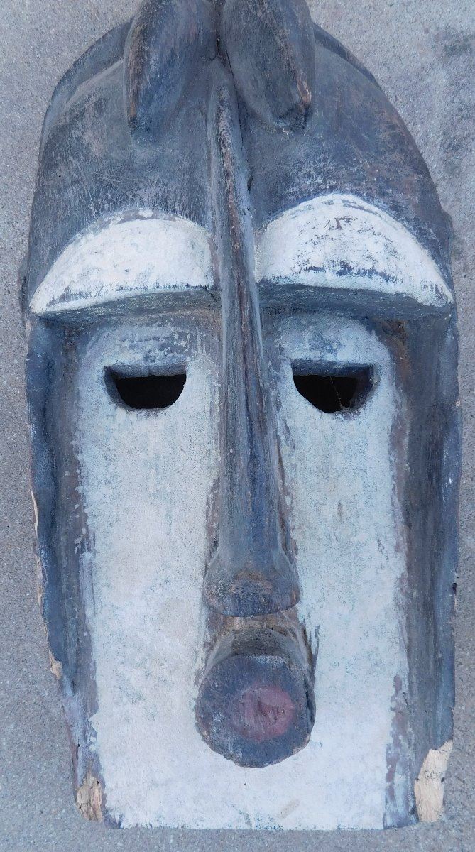 Old African Mask, early 20th century. Made of wood and paint, the item measures 8" x 5.5" x 22". Nigeria. Condition: Good, see images. Shipping: $38.00 w/insurance and signature.
