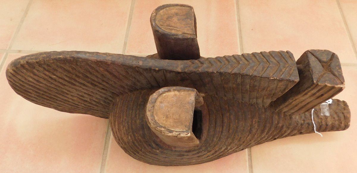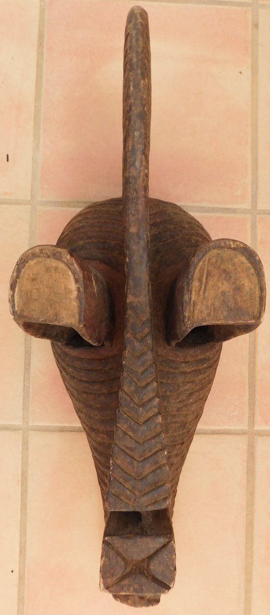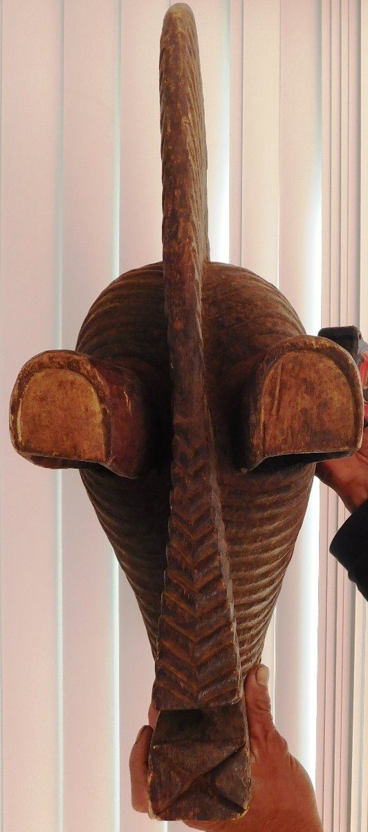Old African Mask, early 20th century. Made of wood and paint, the item measures 10" x 27" x 10". Songye tribe. Large fancy mask. Condition: Good, see images. Shipping: $50.00, USA estimate only, due to size and weight, w/insurance and signature.