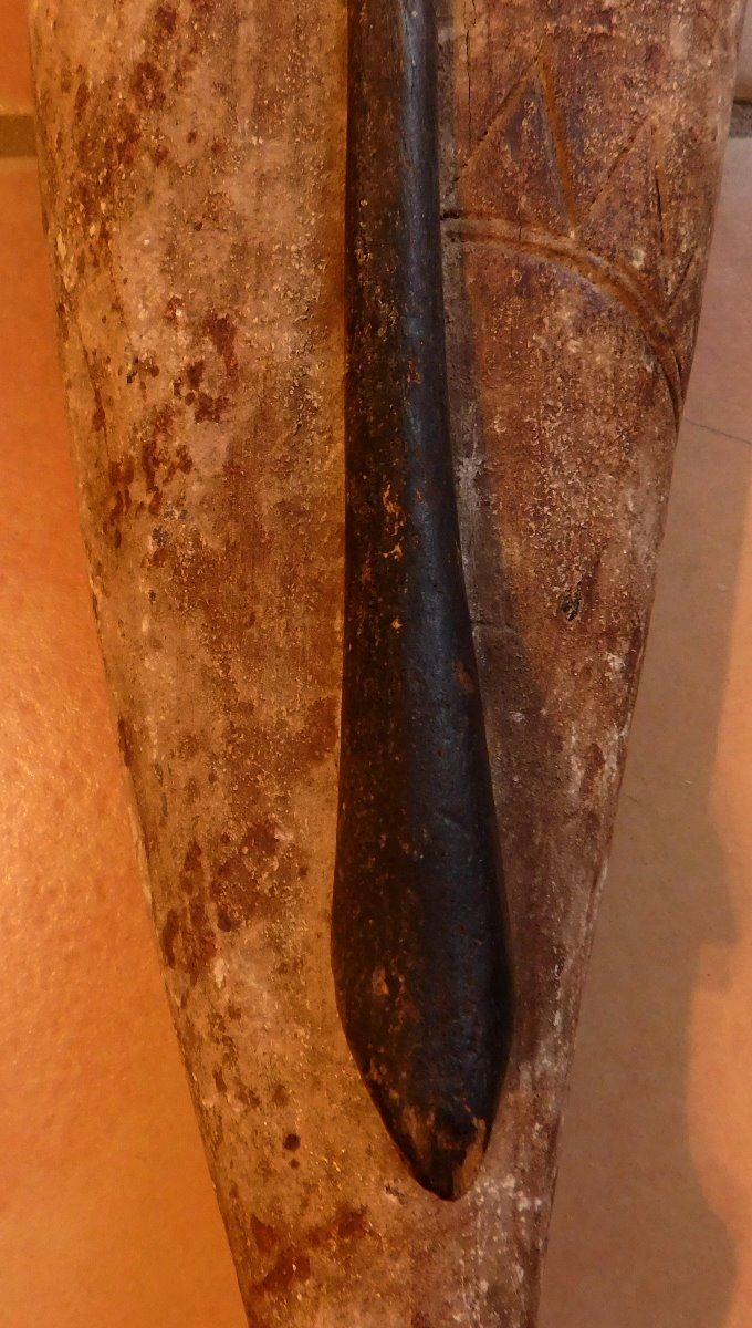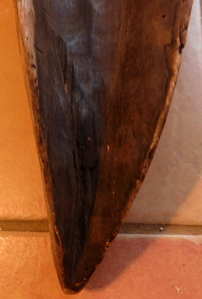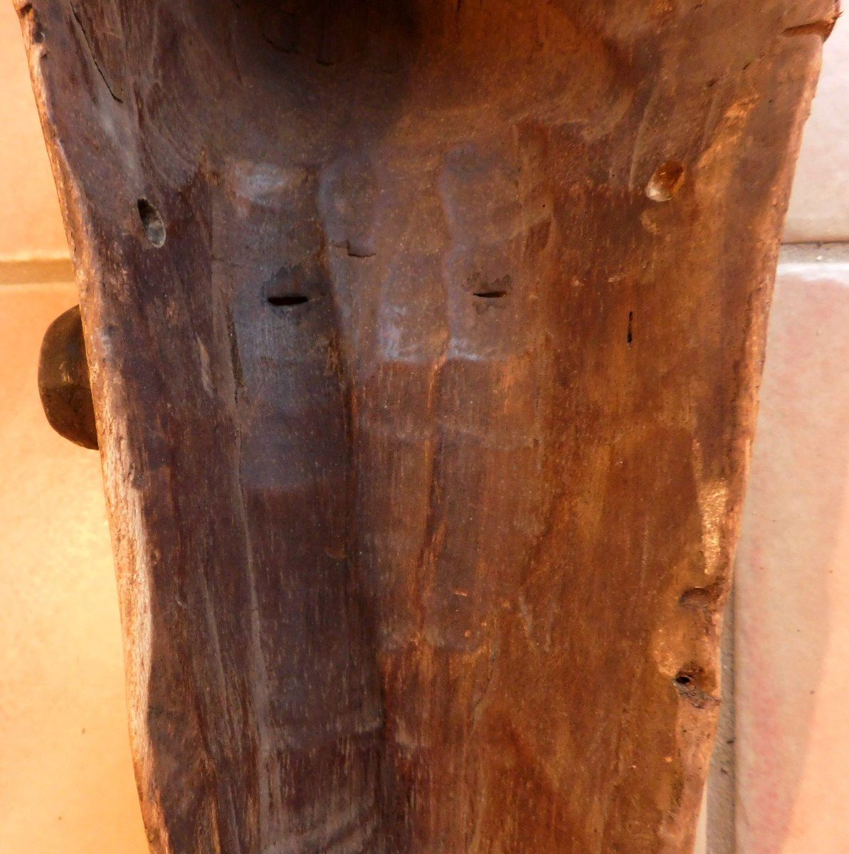 Old African Mask, circa 1940s. Made of wood and paint, the item is 22" x 7.5" x 5". Nigeria. Nice carving, good patina. Condition: Good, see images. Shipping: $45.00 due to length, w/insurance and signature.