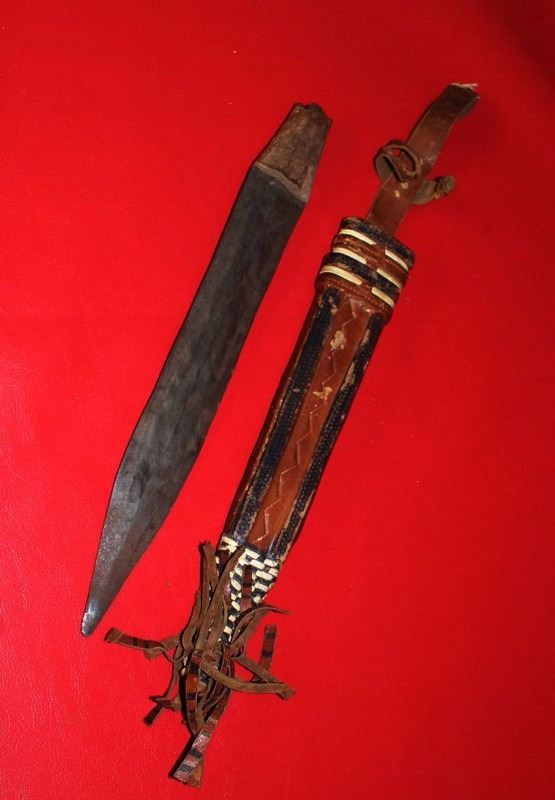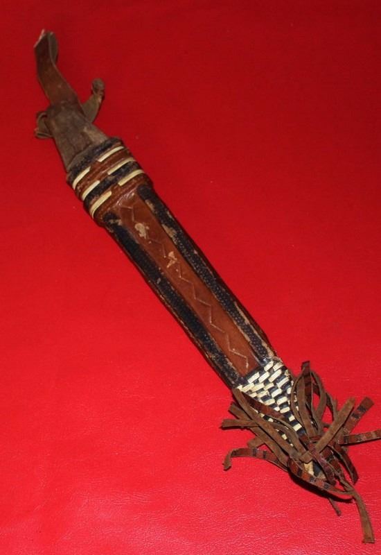 Old African Tribal Knife Dagger w. Leather & Scabbard Sheath 13.00"
