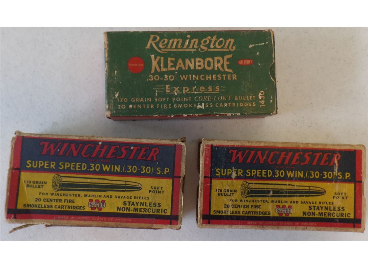 Old Ammo Boxes c. 1930s. Made of paper and ink. Measures 5" x 3" x 1". Condition: Some nicks, tears and wear, see images. Shipping: $12.