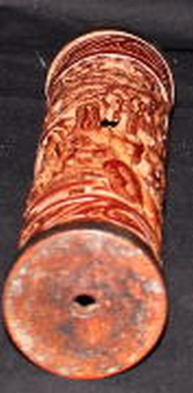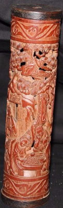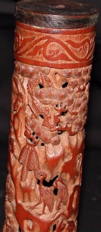 Antique Asian-Taiwanese Bamboo Carving Joss Stick Case 9"