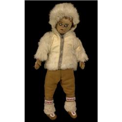 Old Athabascan Doll with Parka of Rabbit Skin 18" H. Good Condition