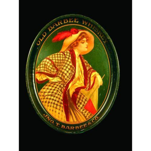 Old Barbee Whiskey Tin Serving Tray, JNO. T. Barbee and Co., 1913, some chips around the rim otherwise very good condition, 12 1/2 x 16 inches.