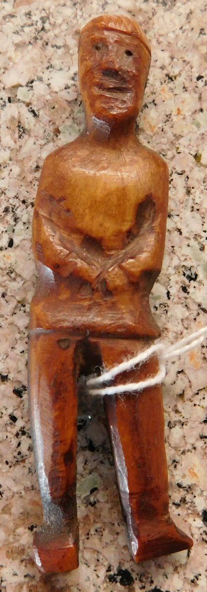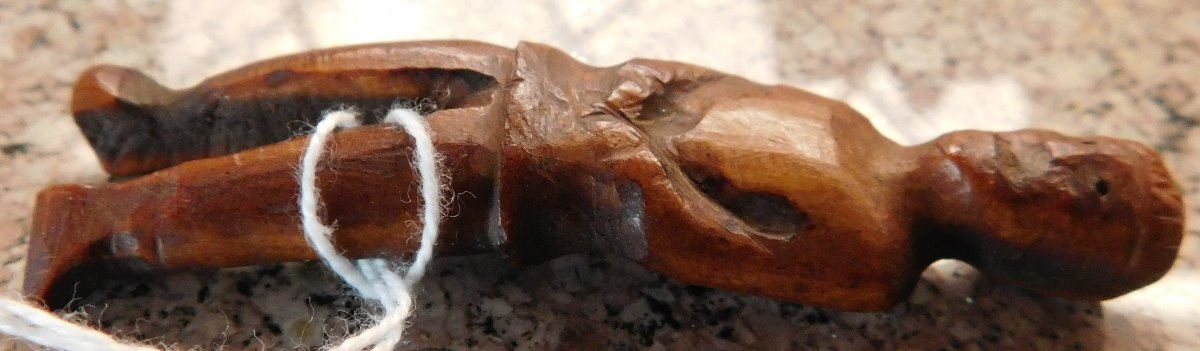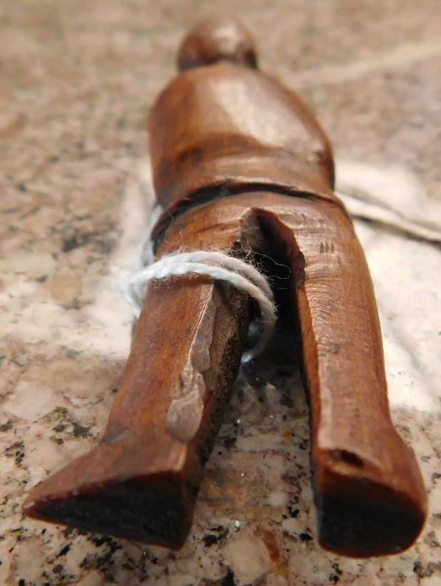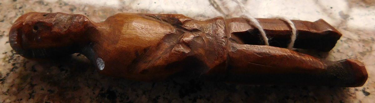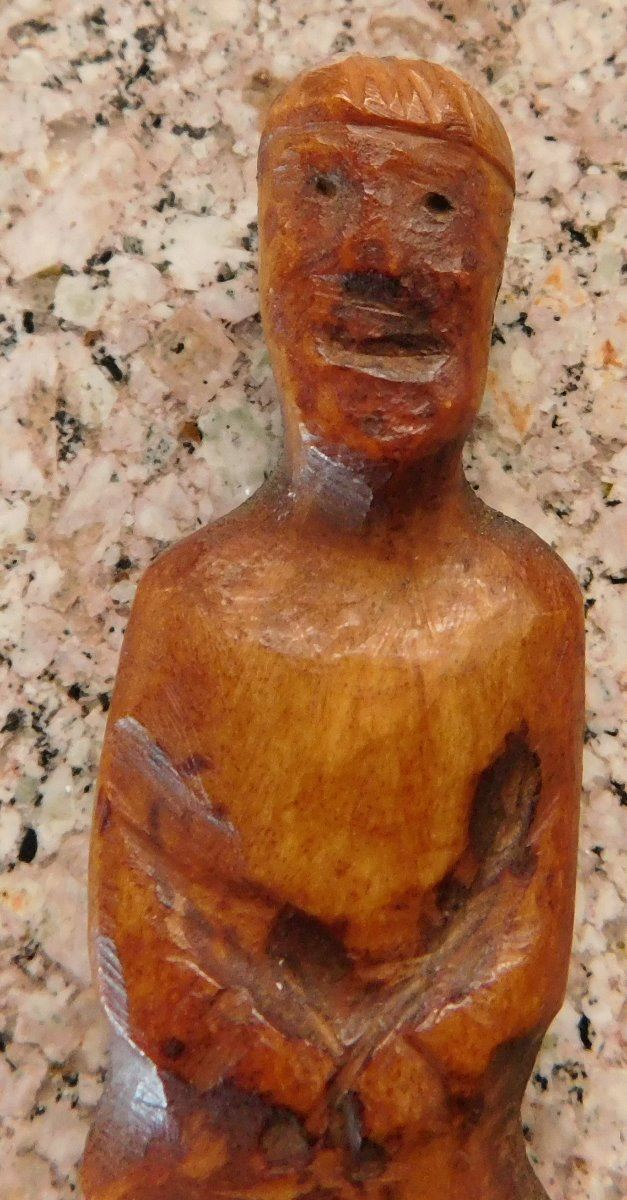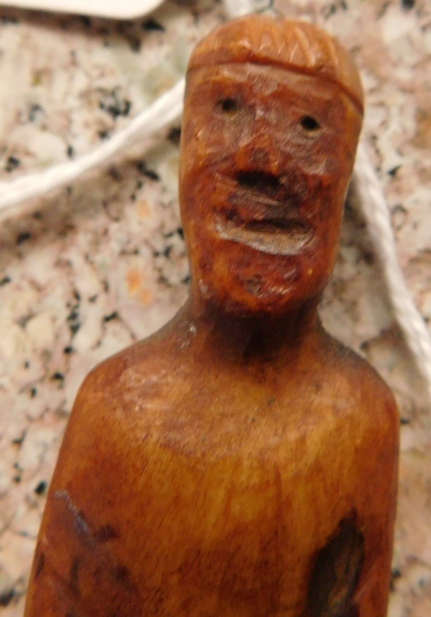 Old Bering Sea Human Sculpture, c. 2000 yrs B.P. Made of bone, the item is 1" x 3.25" x 0.25". Found on St. Lawrence Island. Very gold, rare museum-quality piece. Condition: Very good, see images. Shipping: $16.50 w/insurance and signature.