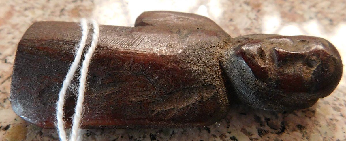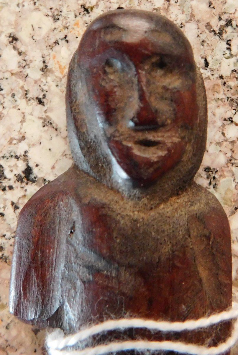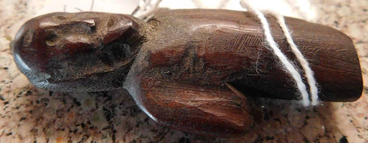 Old Bering Sea Sculpture, circa 2000 yrs B.P. Made of bone, the item is 1.25" x 2.5" x 0.25". St. Lawrence Island. Condition: Very good, see images. Shipping: $16.50 w/insurance and signature.