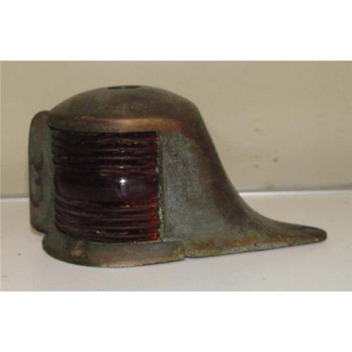 Vintage aged brass bow bi-color light with the original molded glass green and red lens inserts. While you certainly can't go to the local marine store and pluck this off the shelf you can buy it here and now. It makes for a great vintage piece of original nautical and or a truly unique conversation piece desk paper weight.<P>