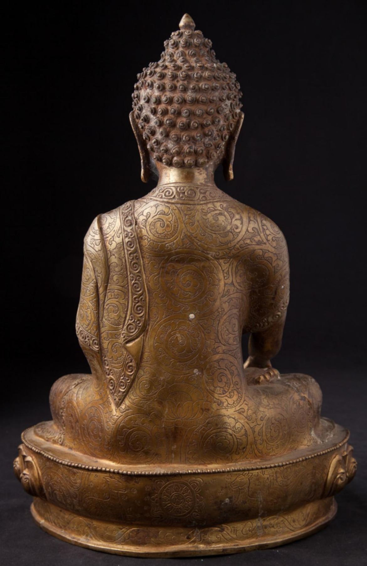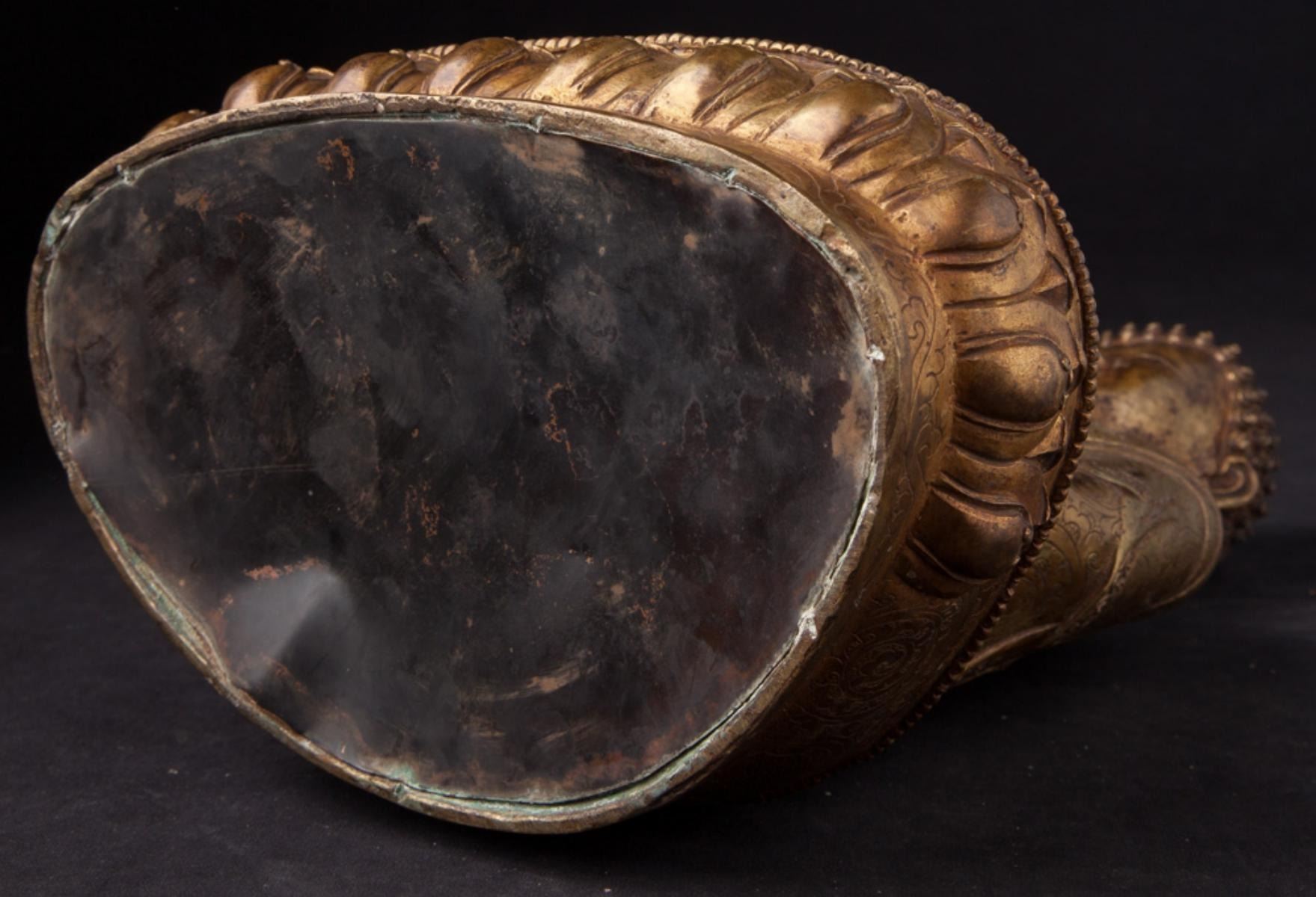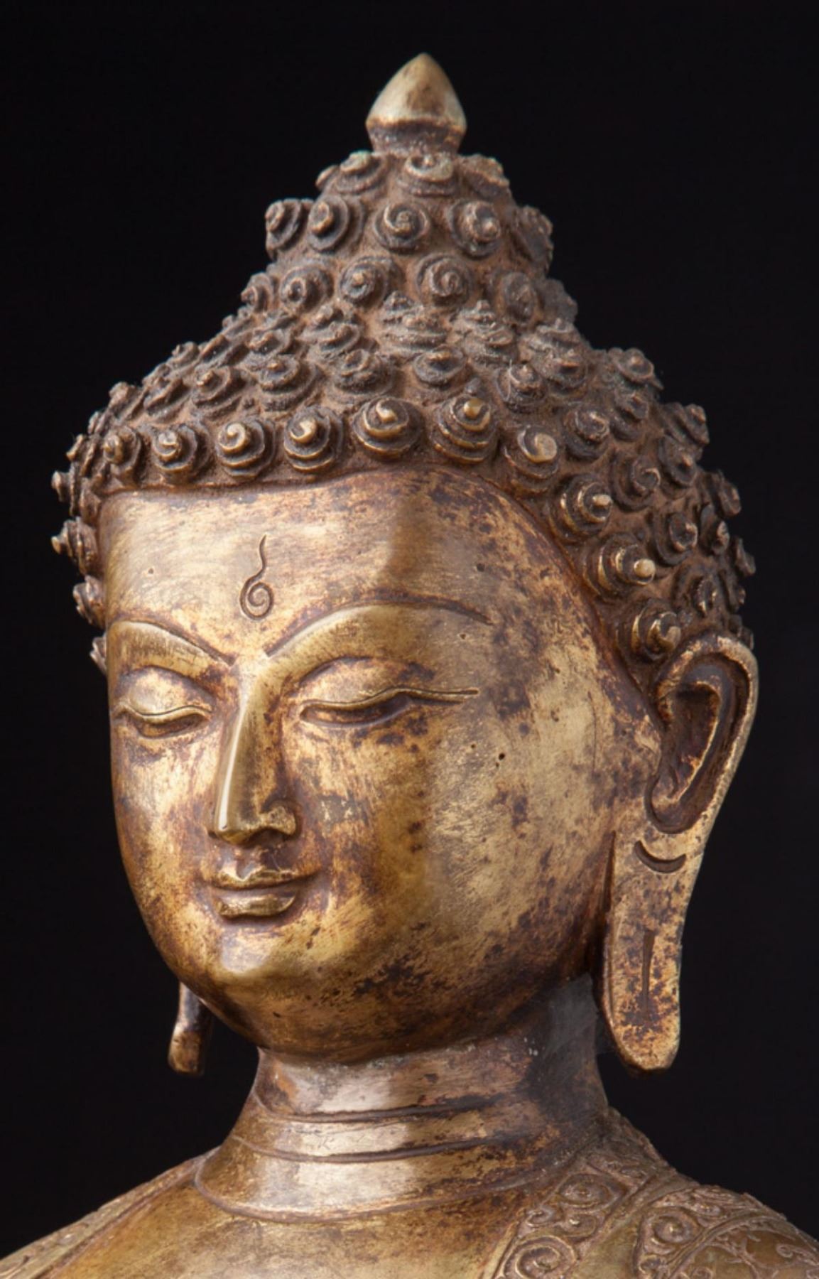 Old Buddha Statue....Material: Bronze;35 cm high;23 cm wide and 16 cm deepFire gilded with 24 krt. gold; Bhumisparsha Mudra......Origin - Nepal