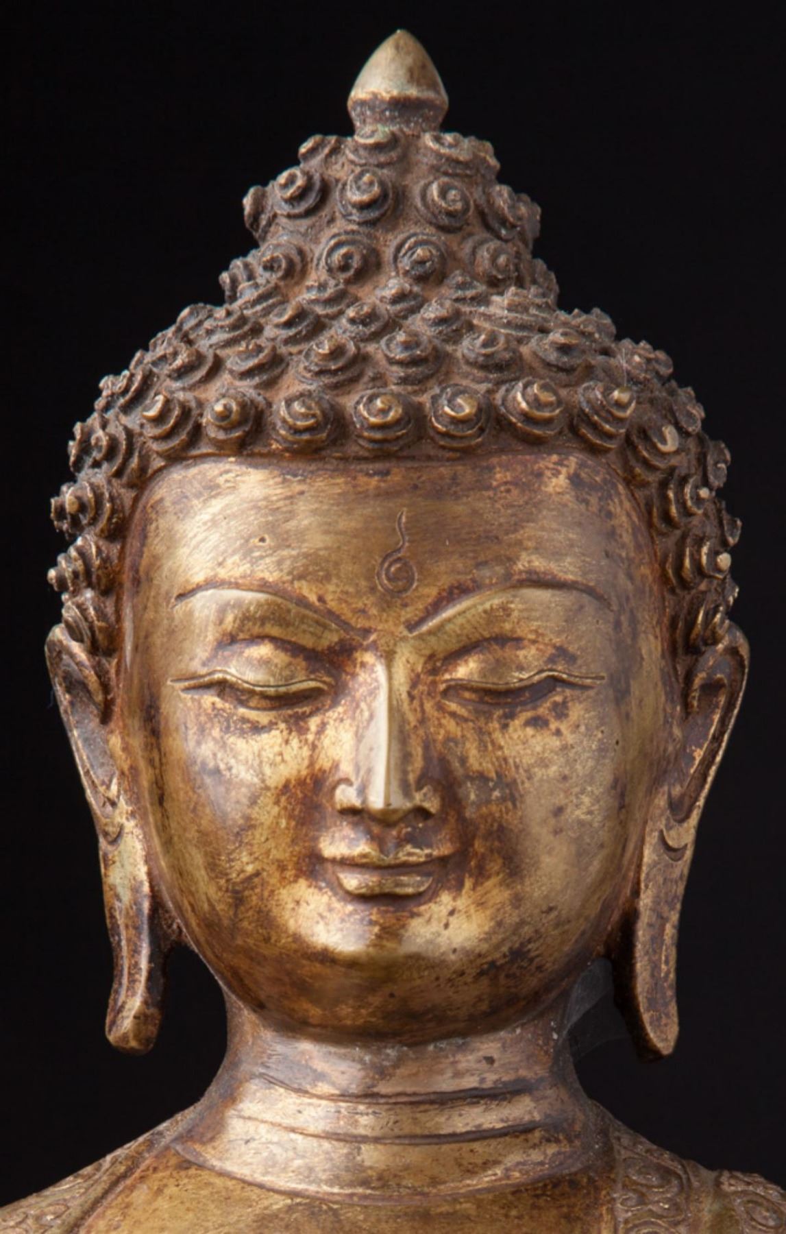 Old Buddha Statue....Material: Bronze;35 cm high;23 cm wide and 16 cm deepFire gilded with 24 krt. gold; Bhumisparsha Mudra......Origin - Nepal