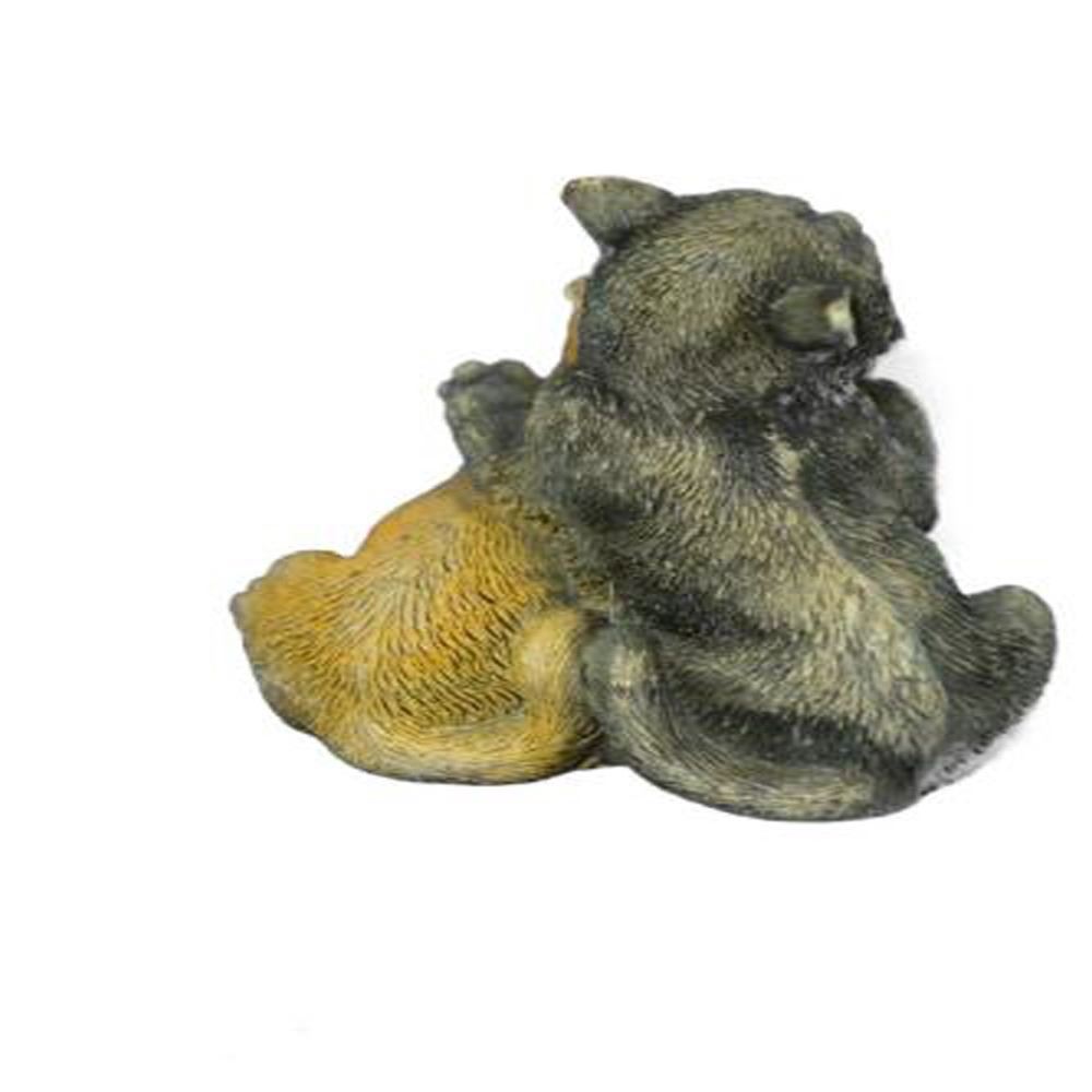 The slender cats sit next to each other purring and staring out amiably and saucer eyed. Rose buds litter the ground where their dainty paws meet and their curled tails twine. Some attributes associated with cats are, cleverness, mystery, intelligence, intuition, the supernatural, independence and astuteness. The Bronze Sculpture was cast using the early method of lost wax method and finished with a multi color patina stain for preservation. Bronze Dimensions: Height 3 X Width 4 inches. Weight: 1 LBS.
