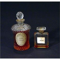 Old Channel No5 perfume bottle, Guerlain glass perfume bottle with paper labels, largest 12cm high