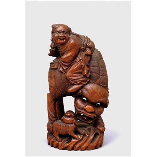<tr><td>Title:Old Chinese Bamboo Boy Ride Fu Dog & Pup </td></tr>
