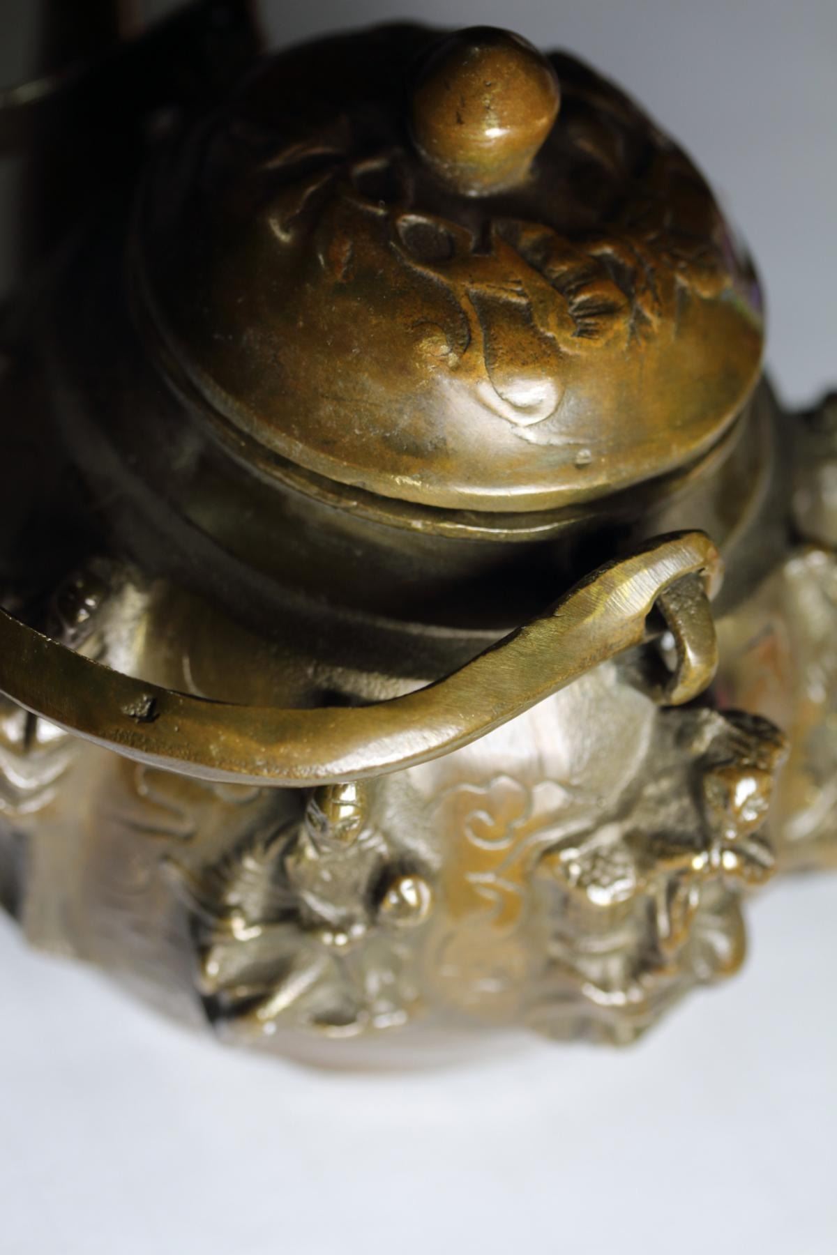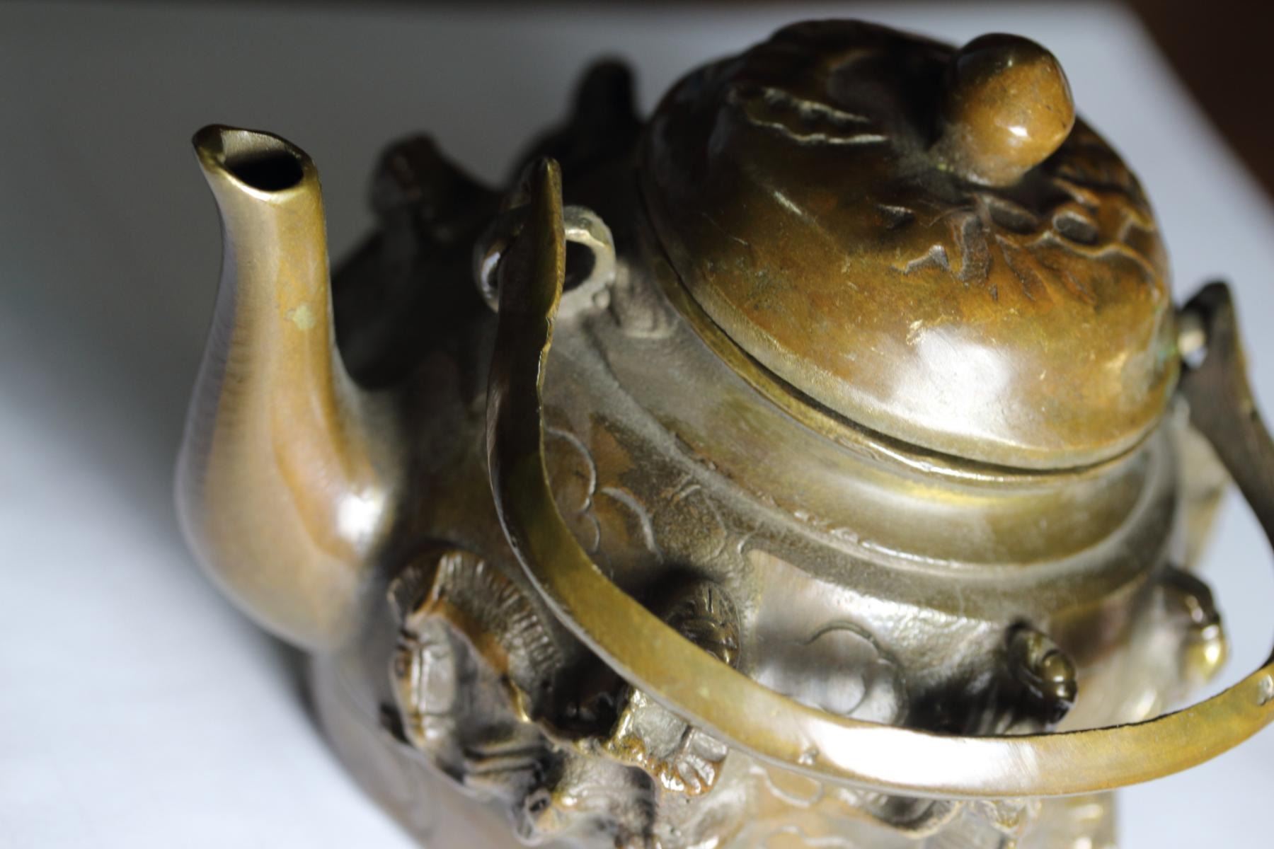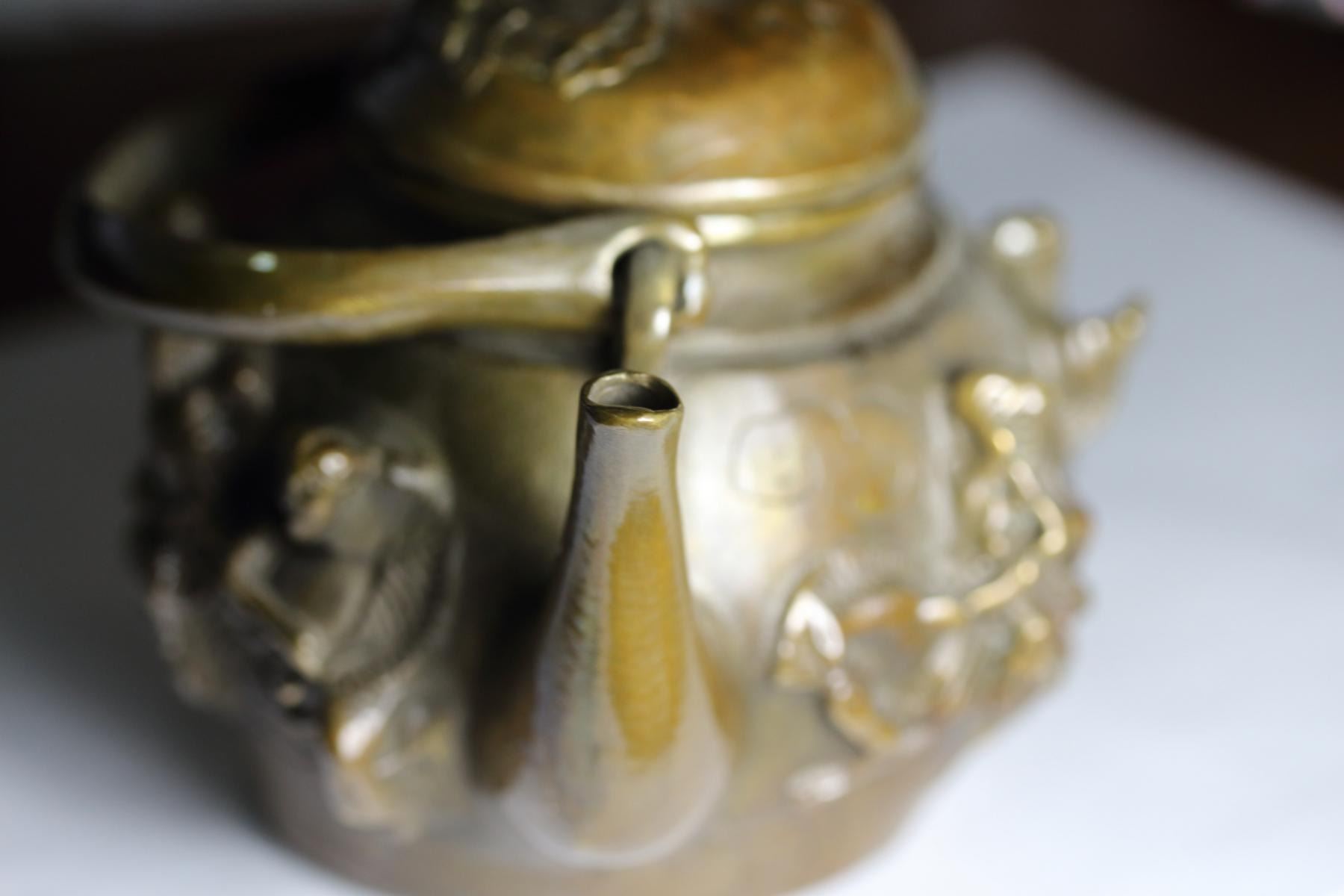 Old-Chinese-Brass Eight-Immortals-8-God-statue- Kettle.....wine pot;size Long: 140 mm/5.51 inch Width: 110 mm/4.33 inch High: 140 mm/5.51 inch weight? 600g