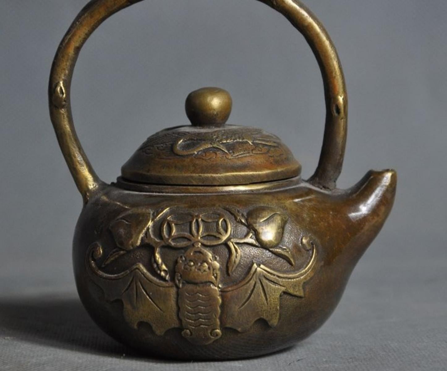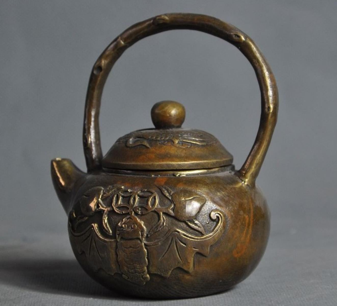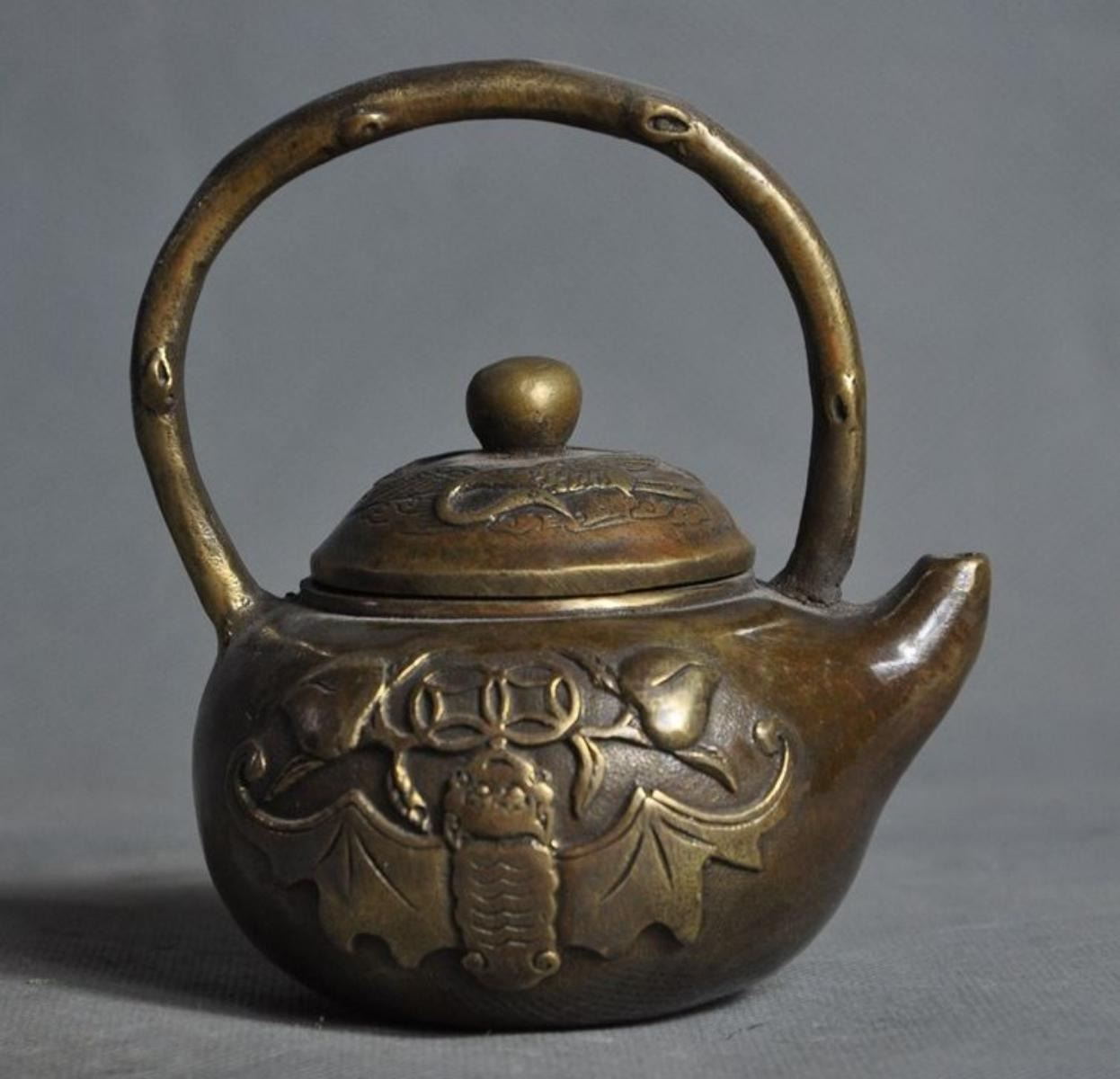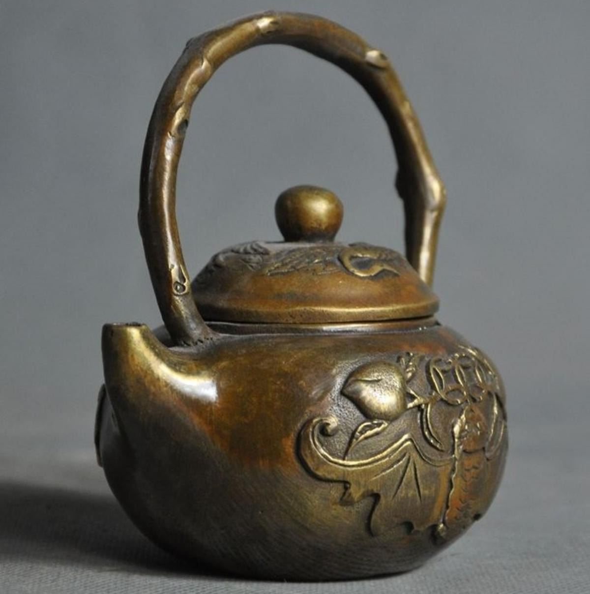 Here is a Marked Old Chinese Bronze Crane Bat Peach Statue Teapot Tea set kettle Water pot, As you can see the image, It is in good condition, and was created by skilled craftsmen in traditional style with fine handcrafts . This is a great piece of valuable collection. Size: Height?4 inch .Long: 3.8 inch . width?3 inch Size: Height?10 CM.Long?9 cm . width?7.5 cm; condition - Good; Origin - China