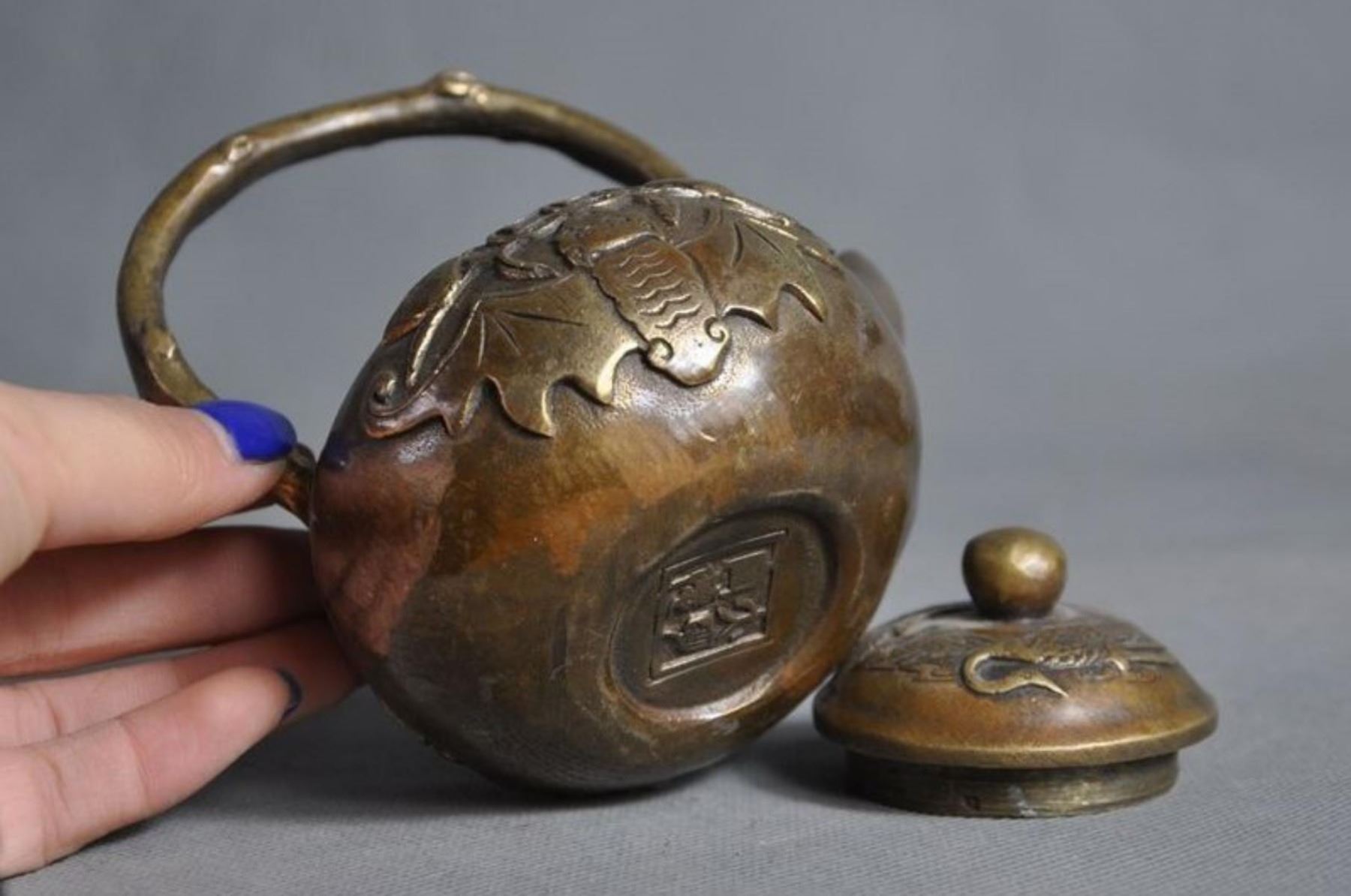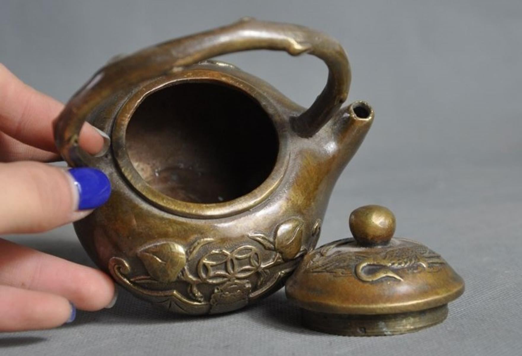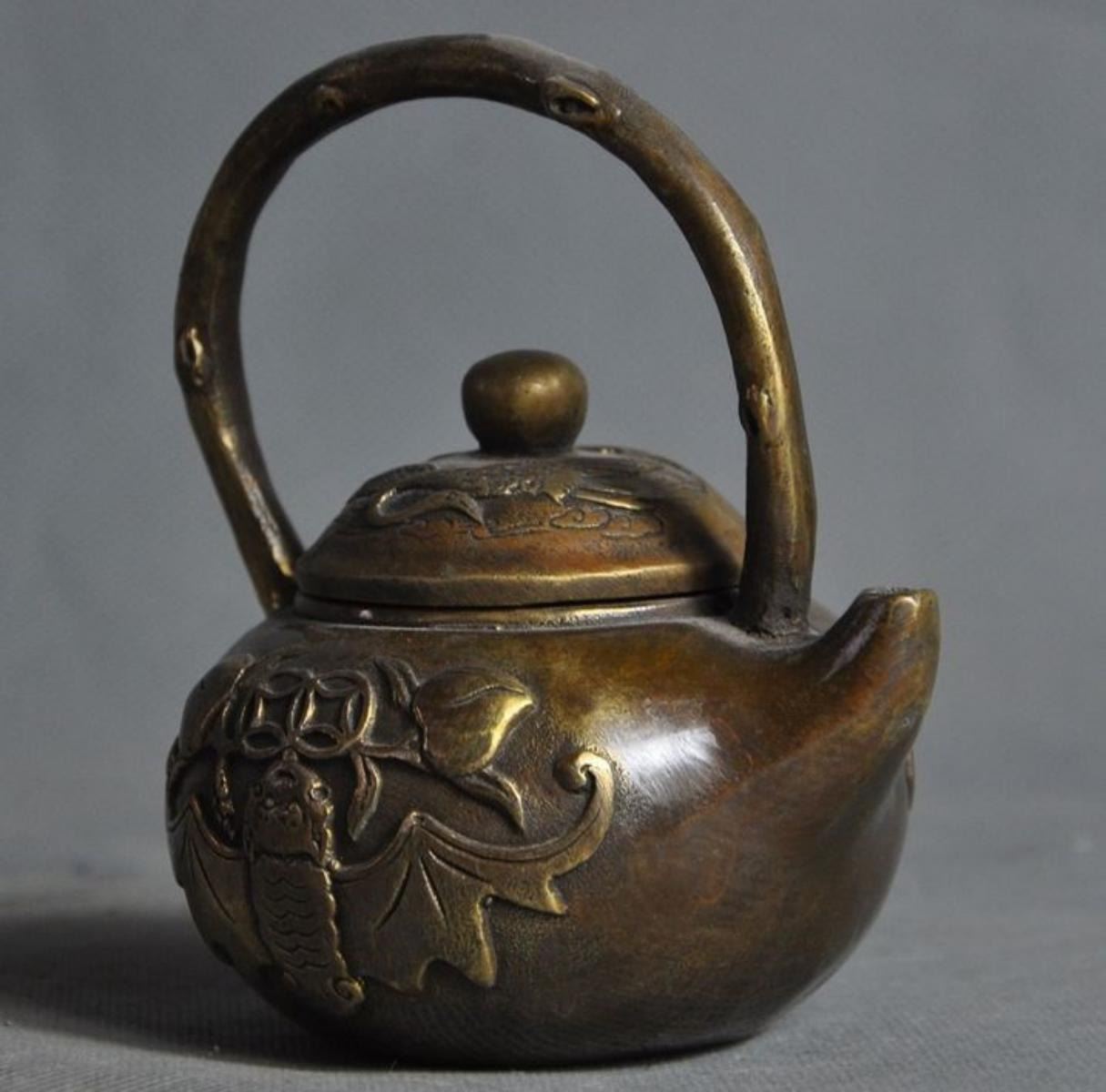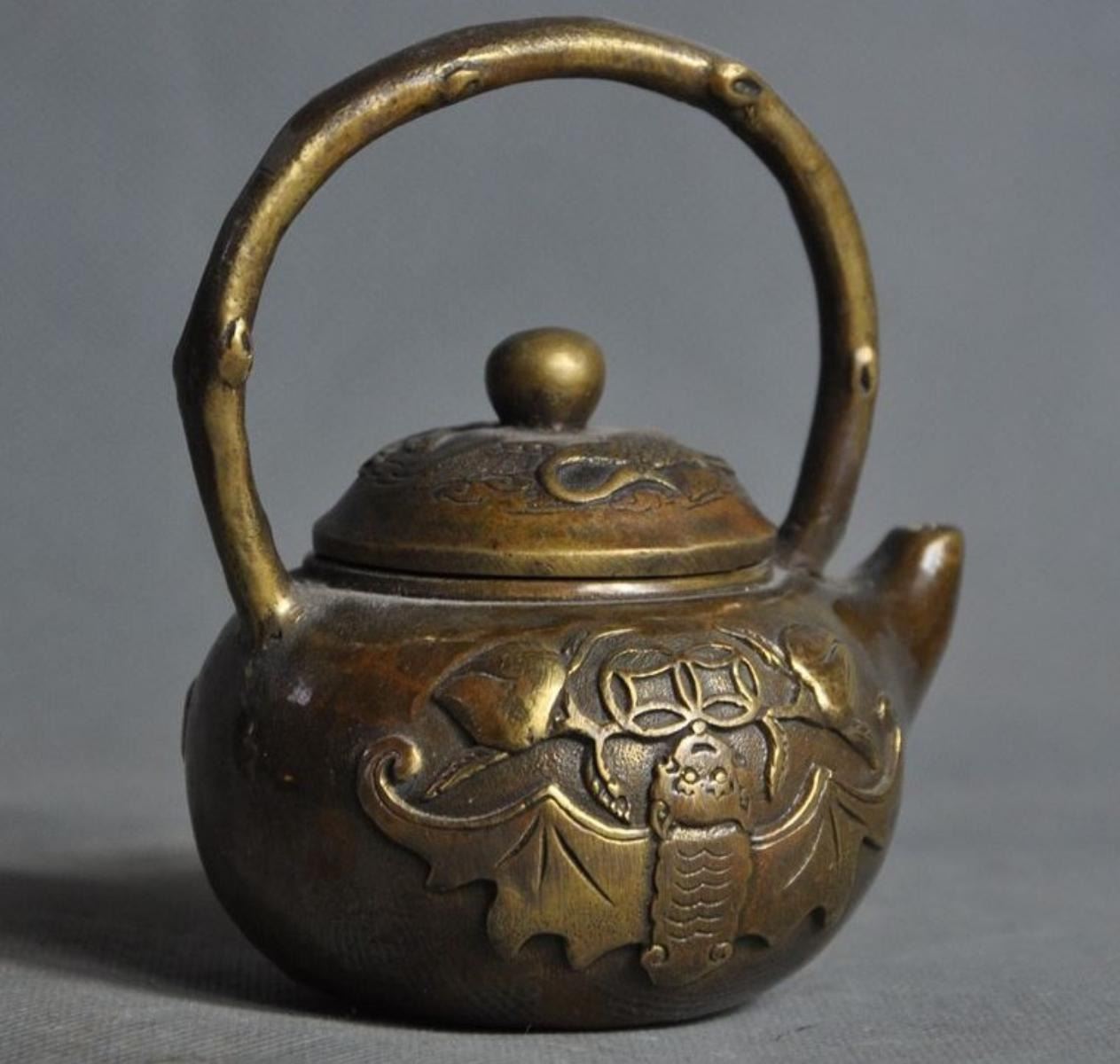 Here is a Marked Old Chinese Bronze Crane Bat Peach Statue Teapot Tea set kettle Water pot, As you can see the image, It is in good condition, and was created by skilled craftsmen in traditional style with fine handcrafts . This is a great piece of valuable collection. Size: Height?4 inch .Long: 3.8 inch . width?3 inch Size: Height?10 CM.Long?9 cm . width?7.5 cm; condition - Good; Origin - China