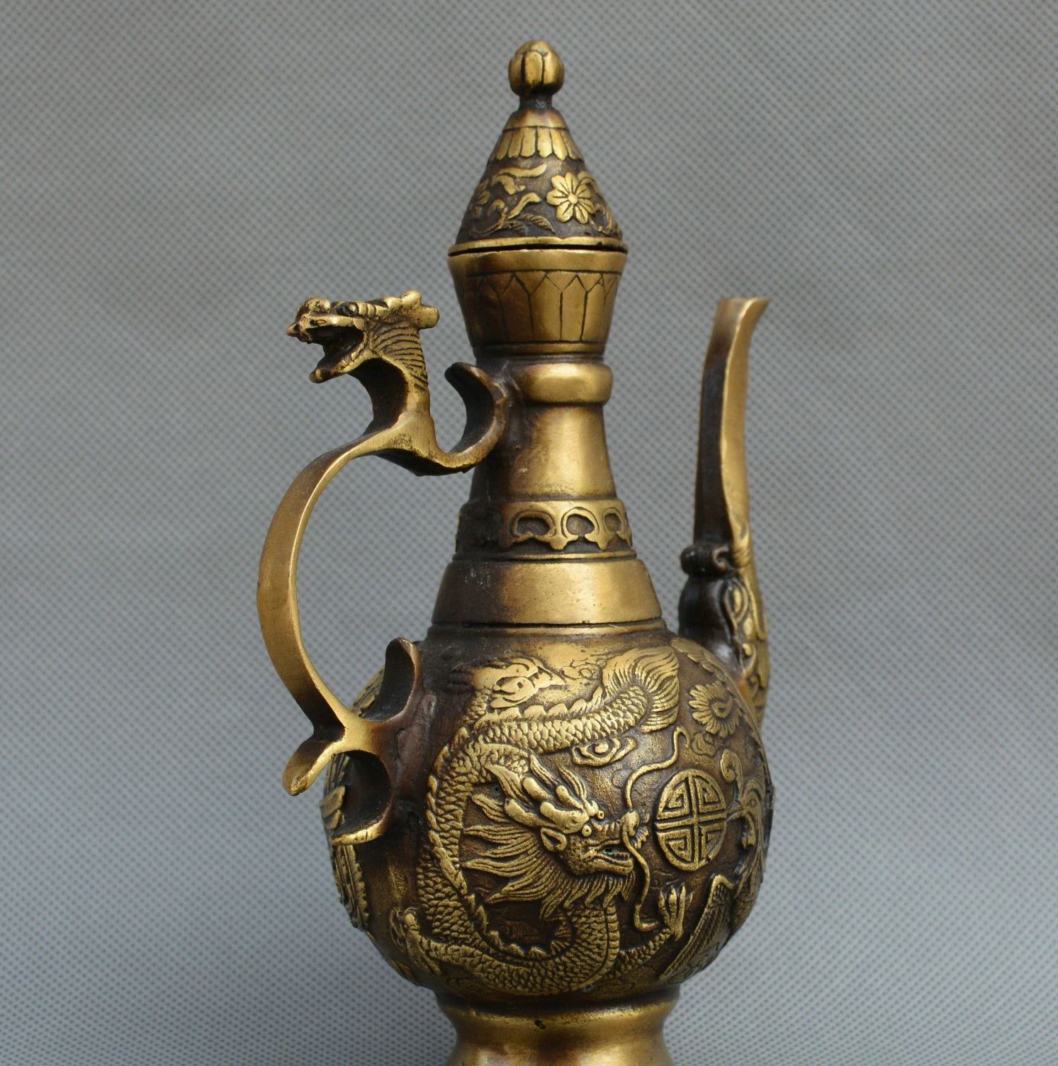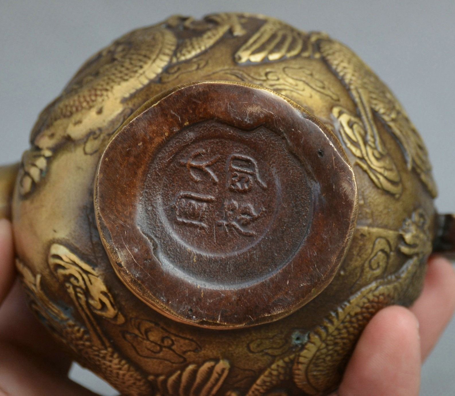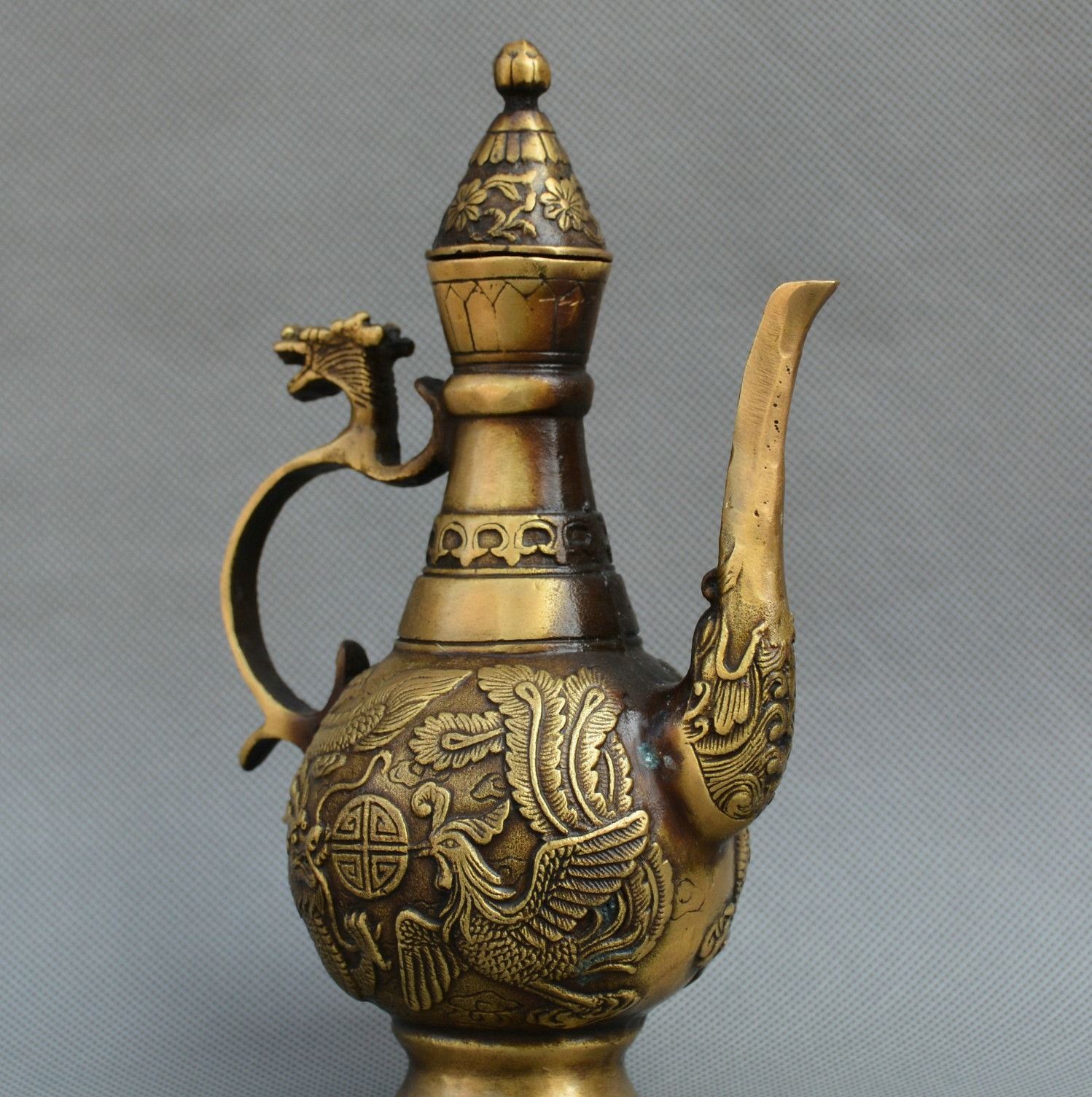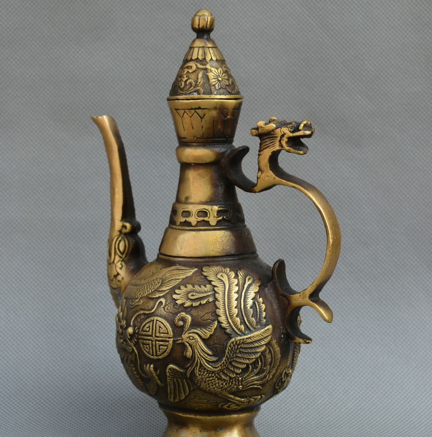 Old Chinese Bronze Dragon Phoenix Kettle.......Size:205MM*145MM*80MM