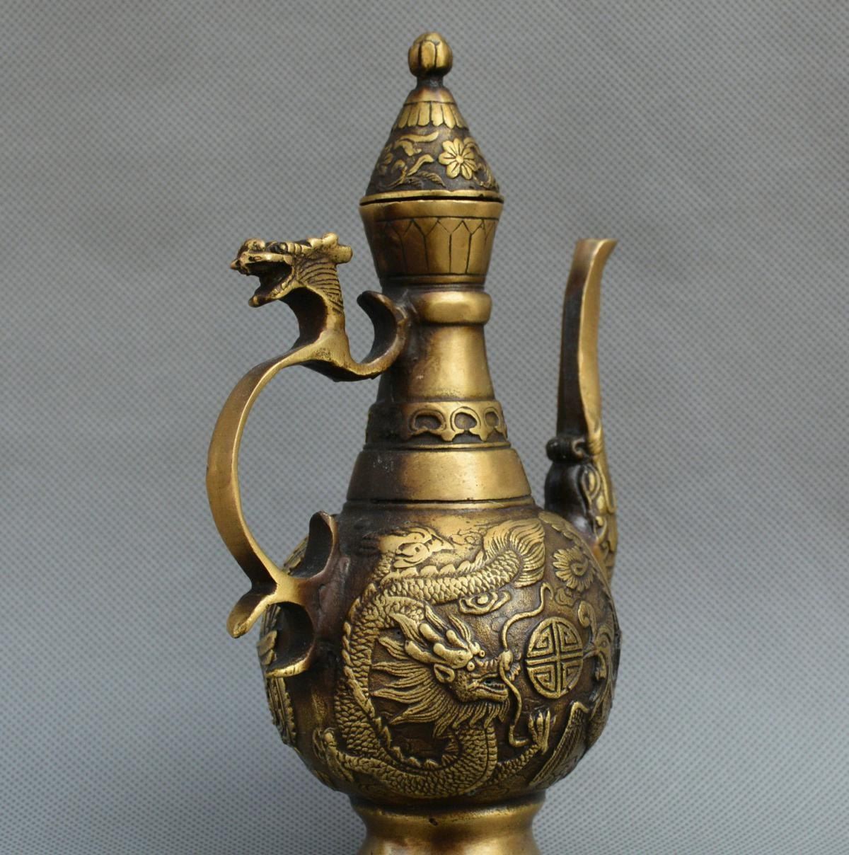 Old Chinese Bronze Dragon Phoenix Kettle.......Size:205MM*145MM*80MM