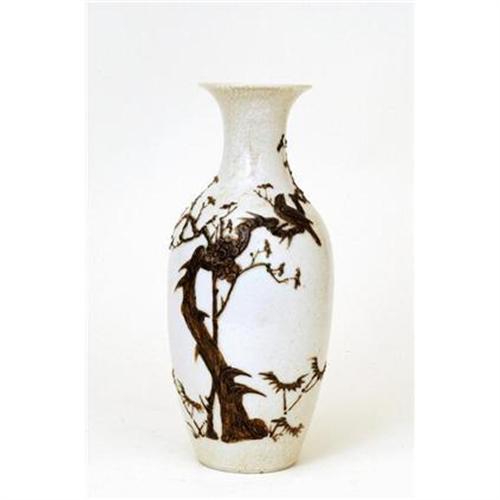 Old (1930's) Chinese Crackle Porcelain Ge Type Relief Vase