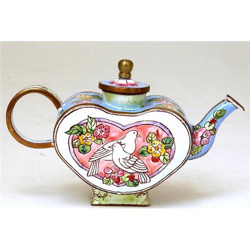 Old (1960's) Chinese Export Enamel Heart Shape Teapot