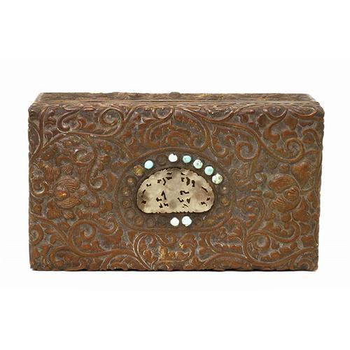Old (1930's) Chinese Export Gilded Copper Dragon Jade stone Box