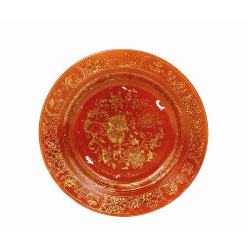 Old (1910's) Chinese Export Gilt Coral Flower Plate
