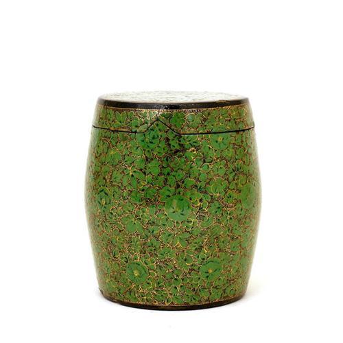Old (1950's) Chinese Export Green Lacquer Medallion Motif Tea Caddy or Humidor with Bronze Lining