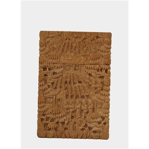 Old (1930's) Chinese Export Sandlewood Carved Card Case with Figurines