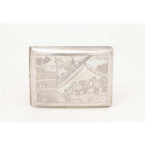 Old (1940's) Chinese Export Silver Cigarette Case with Camel on Great Wall