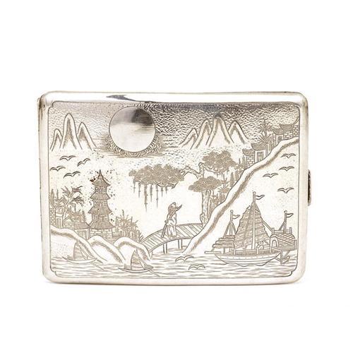Old (1920's) Chinese Export Silver Cigarette Case with Ship Marked