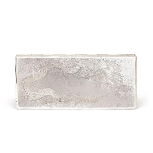 Old Chinese Export Sterling Silver Dragon Cigratte Case Marked "Sterling"
